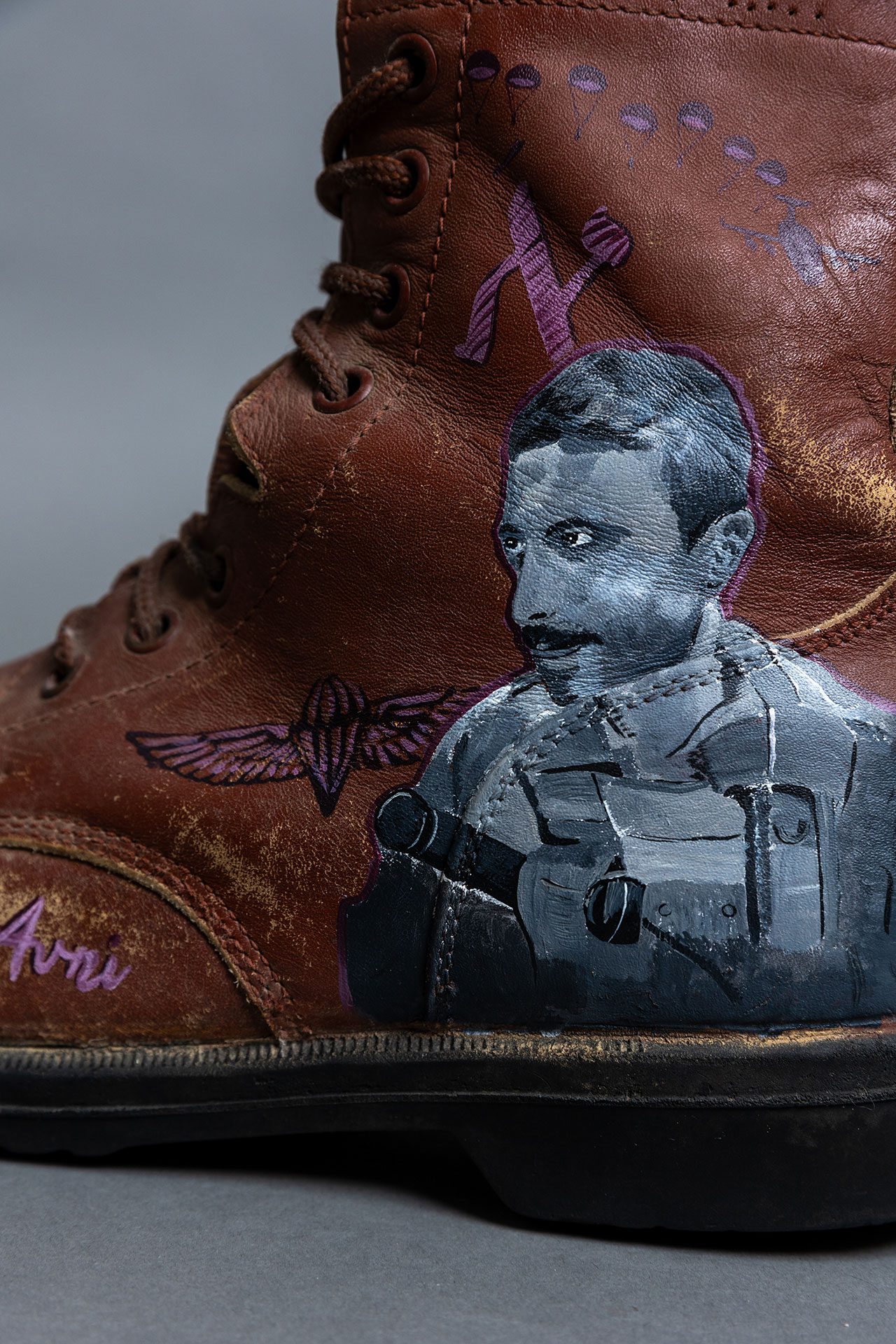 הקולקציה האחרונה שלי נוצרה ברוח התקופה הקשה. החלטתי לצייר פורטרט של אחד מחבריי לפלוגה, גיל אבני הי״ד, על נעלי צבא ישנות – שאותן הענקתי למשפחתו. מאז קיבלתי עוד כמה בקשות ממשפחות שכולות שלהן לא יכולתי לסרב.