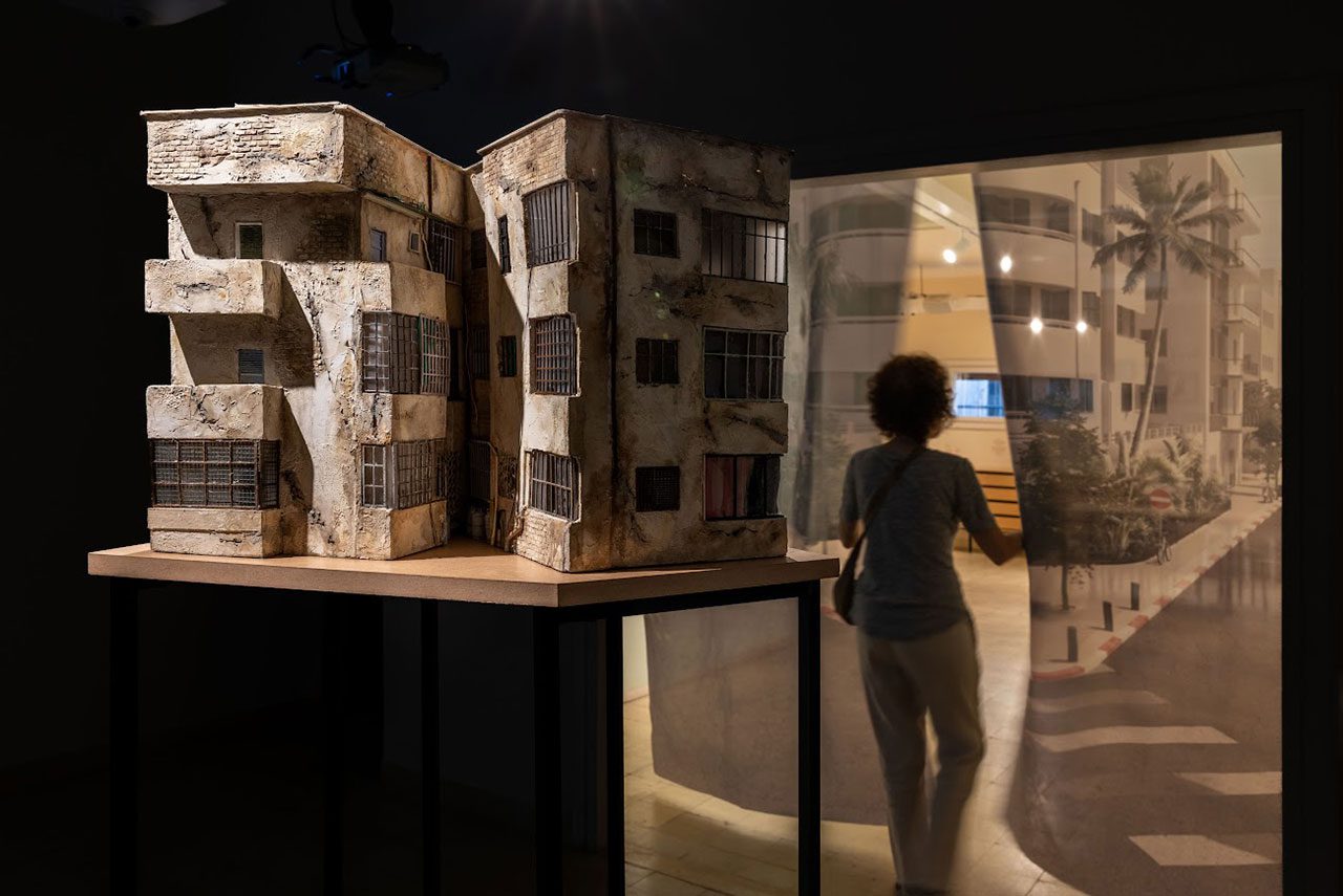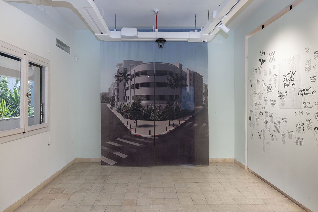 ככזו התערוכה נעה בין עברו העגום של הבניין לבין עתידו המדומיין כבניין מושלם לאחר השיפוץ, כמו גם בין הרובד המוחשי־פיזי של פגעיו המתועדים – סדקים, קילופים והתפוררות חומרית – לרבדים לא מוחשיים הנוגעים לממד האנושי, לדיירים ולשכונה. הכניסה לחלל שבו היא מוצגת עוברת דרך וילון שעליו מודפסת הדמיה אדריכלית ״כסוג של קלישאה, ולאו דווקא הדמיה אדריכלית פר סה״, אומר באומגרטן על איך הבניין ייראה בסופו של התהליך.