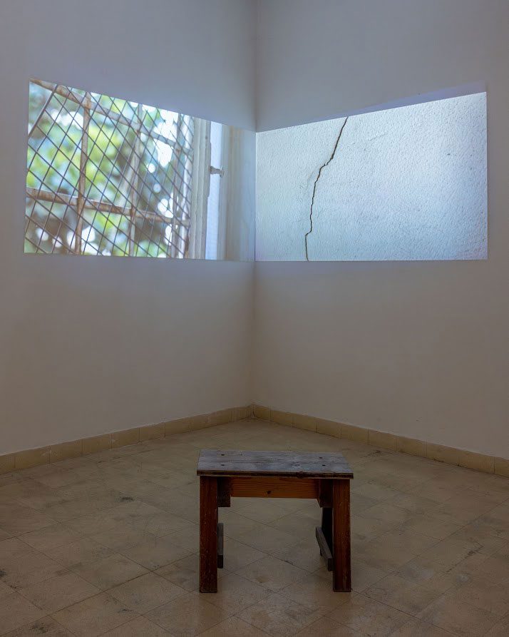 החלל עצמו מוחשך, מה שמשווה לו תחושה של קפסולת זמן. מוצג בו מיצב שנרקם ממודל בקנה מידה גדול יחסית של המבנה ההרוס, מהמכתב הראשון שנשלח בעניינו לאורך השנים, ומסרט וידאו המוקרן על שניים מקירות החלל, שבו מגולל באומגרטן בקולו את סיפורו האישי ושוזר בסיפור תמונות של מצב הבניין ושל תהליך השימור שפורץ מבעד לסדקים.