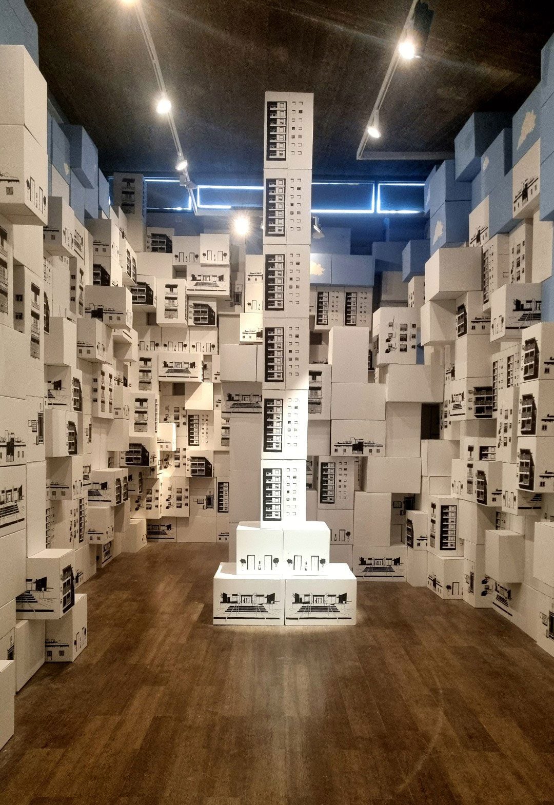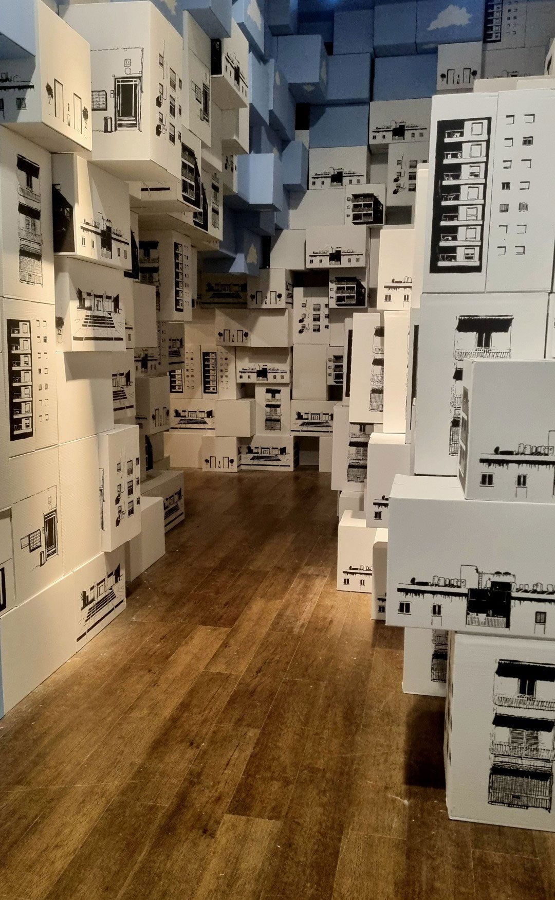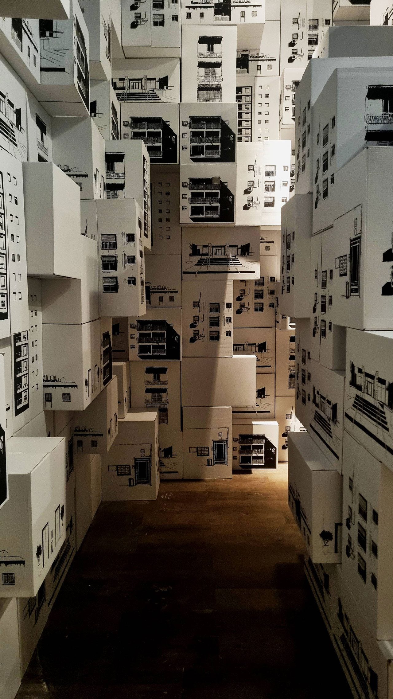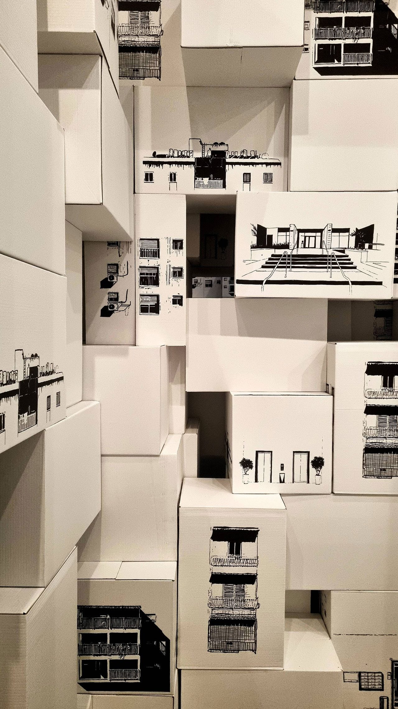 המיצב ממשיך את ההתעסקות שלי במרחב האורבני הישראלי. דימויי הבניינים הגנריים על גבי הארגזים, ואקט הבנייה הכאילו־אקראי באמצעות הארגזים, באים לשקף את תרבות הבנייה בארץ – הערמות הארכיטקטוניות שבהן אנו גרים, חוסר ההתחשבות התכנונית בסביבה, הבנייה בחומרי גלם גסים וזולים, אי הראייה קדימה מבחינת טובת התושב וחוסר בעירוב שימושים בתכנון העירוני ובבניה המסיבית והגנרית ברחבי המדינה.