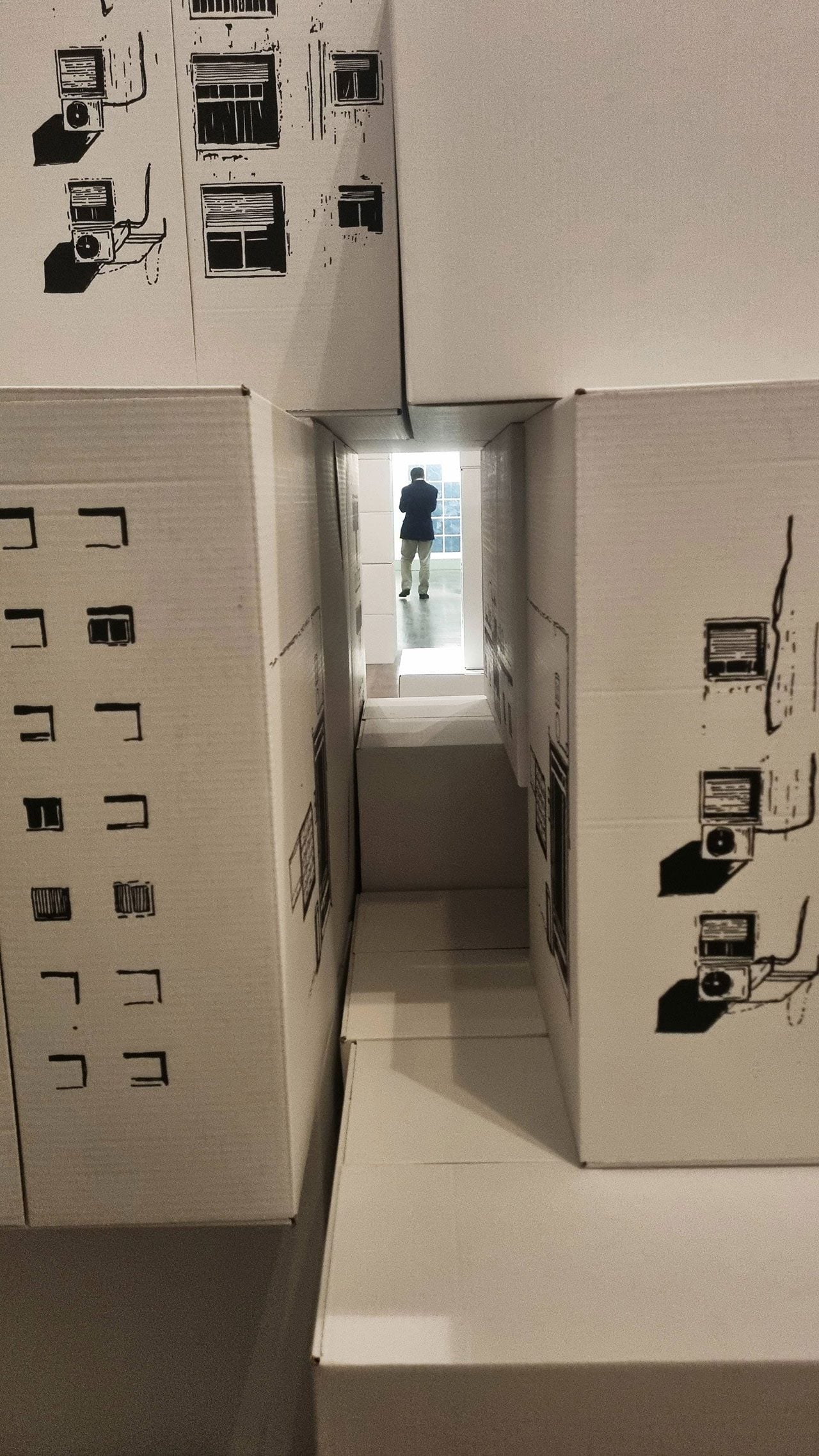 נוסף לכל אלו, ההצבה דווקא באגף הנוער מייצרת עוד הבט לעבודה – נקודת המבט של ילד, זה התוהה מה קורה בתוך הארגז? מי גר בבניינים האלה? הילד שמחפש ומוצא את כל הסדקים הקטנים להציץ דרכם, שמסתתר ביניהם במשחק מחבואים ובונה מהם מגדלים חדשים, יוצר בעצמו כאוס או סדר חדש בתוך המיצב. אולי דווקא המבט התמים הזה הוא ששובר את המטען שאני מביא איתי לעבודה הזו, של הגנריות, חוסר הזהות והניכור.