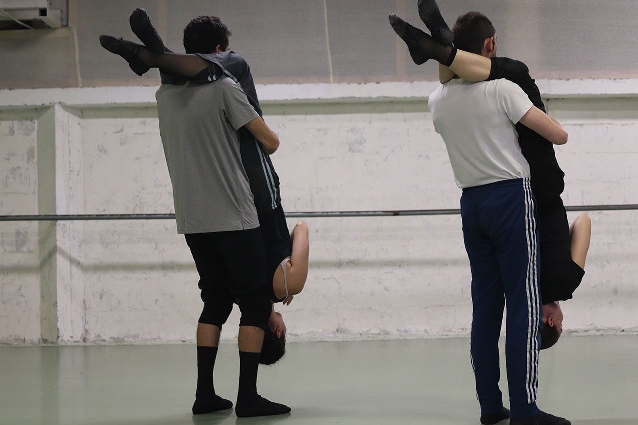 בסטודיו ״זהבה וז׳ק דלל״ – שאין בו במה או ספסלי קהל, אלא רק רצפת לינוליאום כהה מקיר אל קיר – הכוריאוגרפית והרקדנית סתיו סטרוז בוטרוס, מאופרת ועטויית תלבושת, מקבלת את פני בחיבוק. עדי בוטרוס, בן זוגה של סתיו והמלוה האמנותי של היצירה, מציע כוס מים קרים.