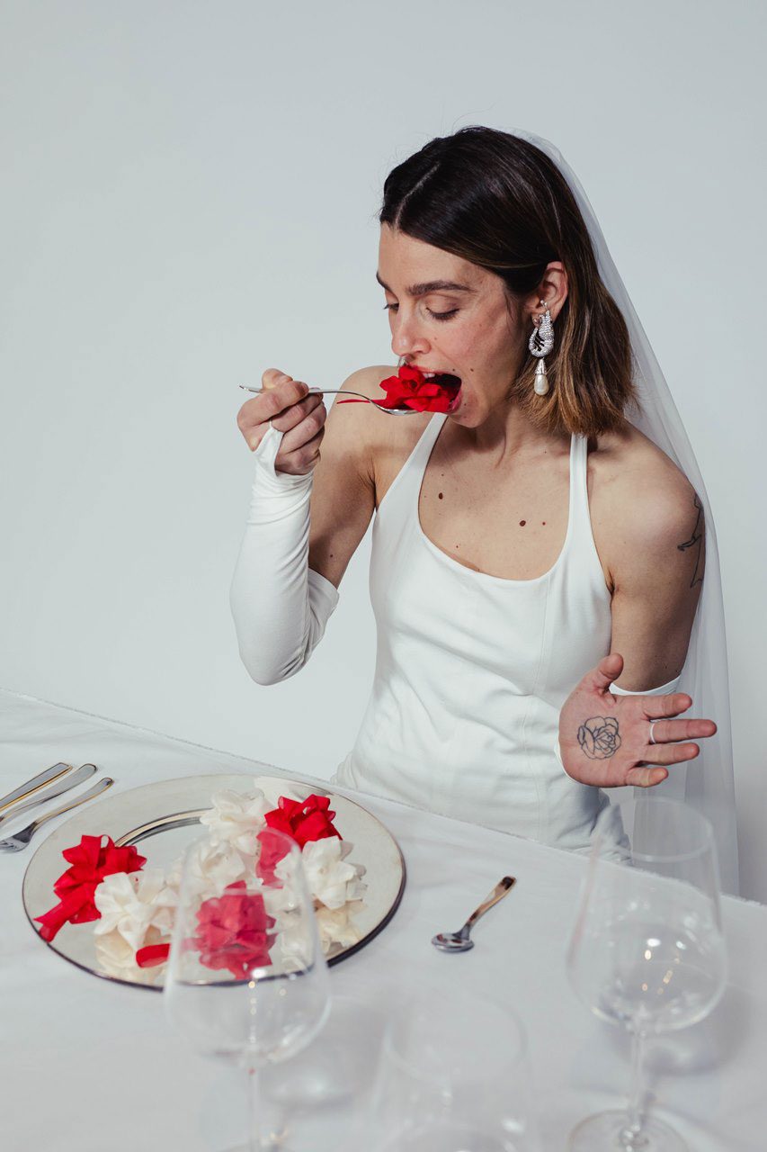 את יובל, בן זוגה, הכירה ברונר עוד בתיכון. ״אנחנו כבר 11 שנים יחד. לפני שנה התחתנו בגינה שבבית הוריו, ובחתונה לבשתי שמלת כלה של המעצב הצרפתי סימון פורט ז׳אקמוס – שמציע פריטים שובבים וסקסיים לצד גישה פורצת גבולות. חיפשתי אחרי שמלת הכלה שלי מספר חודשים. לא היה לי משהו מוגדר שדמיינתי, פשוט רציתי להתרגש מהבחירה, והשמלה של ז׳אקמוס עשתה לי את זה. קניתי את השמלה ומתוך זה גם נבחר שם המותג souvenir – מזכרת. רציתי שהשמלה שנרכשה תישאר אצלי כמזכרת מיום החתונה שלי. ככה אני מתייחסת לשמלות הכלה שאני מעצבת״.