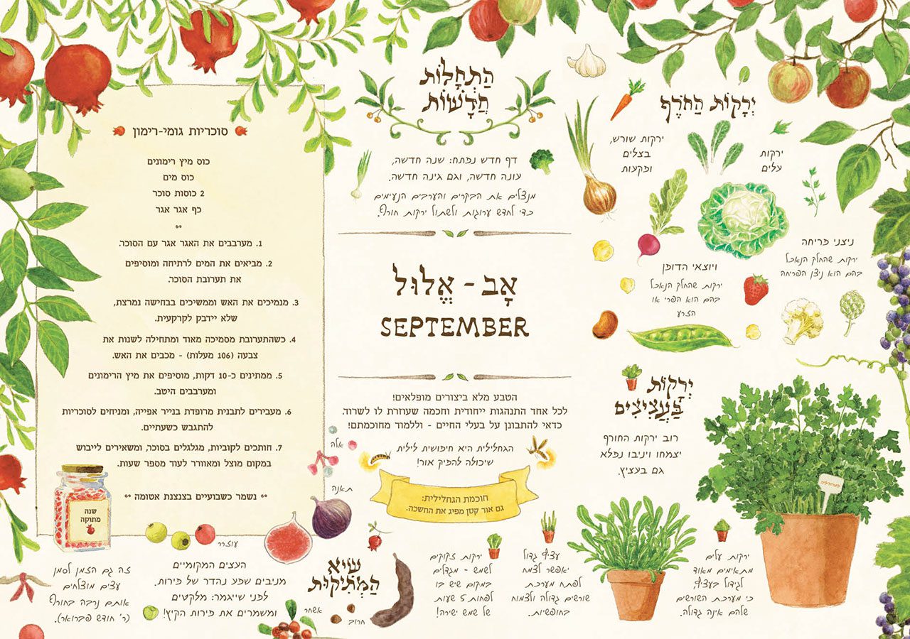 התוכן בלוחות והתכנים שאני עוסקת בהם הם ידניים ומעשיים – גידול מזון, עבודות האדמה, טבע. העיסוק ברובו הוא בצמחים ולכן היה חשוב לי שהטכניקה של האיור תתאים. צבעי מים הם הבחירה האולטימטיבית, הם עובדים נפלא עם עולם הטבע בכלל והאיורים הבוטניים בפרט.