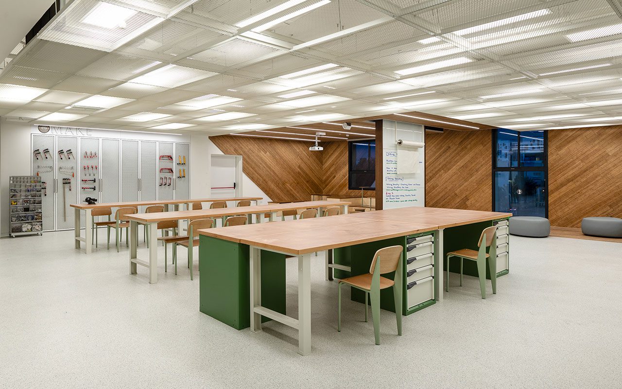 קומות בית הספר כוללות גם מעבדה ואזור סדנה כמרחב יצרנות והתנסות בבניית פרויקטים. ״אזור הסדנה מצויד היטב במנעד רחב של כלים, ומשרת גם צרכים של קומות אחרות, כמו את סדנאות המייקרים שבקומת הקיימות או את חוג הנגרות שבקומת החוגים. בתוך כך, בא לידי ביטוי גם ההיבט הקהילתי של מטאור, שהיה היבט חשוב בתפיסת התכנון – למרות התכנים השונים, ההקשרים בין הקומות נשמרים״.