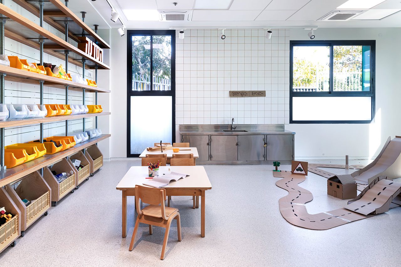 מרחב הגן מכיל גם מטבח ניסוי, וכחלק מלמידה חווייתית הכוללת גם תכנים טכנולוגיים, תוכנן בו חלל כסוג של קופסה שחורה עם פונקצית הקרנה שמופעלת במגע ומקרינה על הקירות והרצפה. אלמנט מעניין אחר הוא אלמנט נגרות המאפשר התנסות בבנייה תוך חיבור רכיבים שונים ליצירת תנועה והשתקפויות באמצעות מראות בתצורת חלוקי נחל המשולבות בו, ומהוות גם חלק מחיפוי התקרה. אלמנט מיוחד נוסף הוא כיפות עשויות עץ המייצרות סוג של מרחבים למפגשים אישיים בתוך העושר החווייתי שמרחב החלל כולו מזמן.