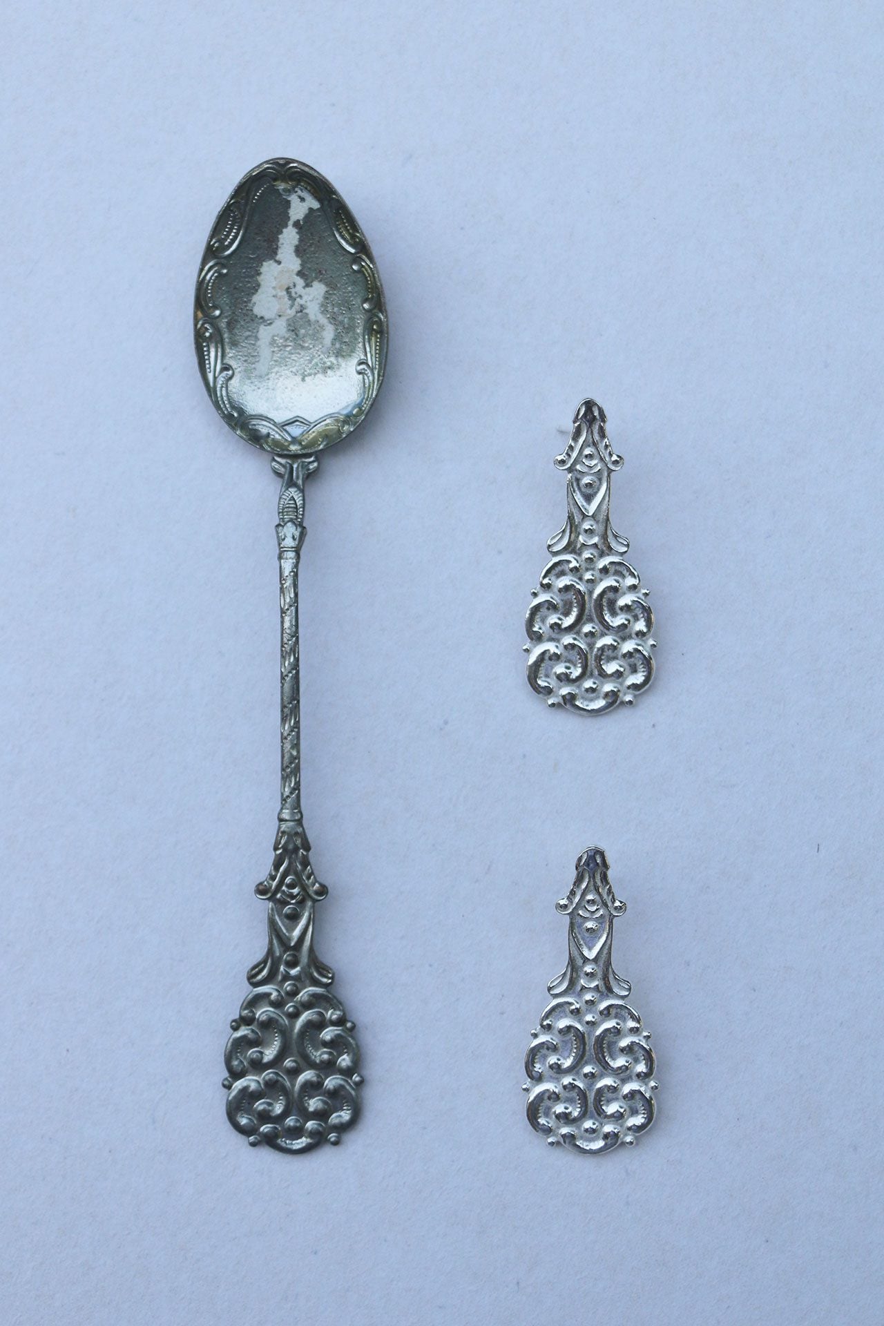 נטע: לפני כמה שנים הסתובבנו בעיירה קטנה ליד פריז וראינו שוק וינטג׳ הורס שישבה בו סבתא שמכרה כפיות שאספה כל השנים. הטקסטורות והציורים על הכפיות היו ייחודים ונראו כמו אוסף ציורים. הבנו באותו רגע שאנחנו צריכות לעשות עם זה משהו. ניסינו לשים את זה על האצבע וליד האוזן וזה התחבר ברגע.