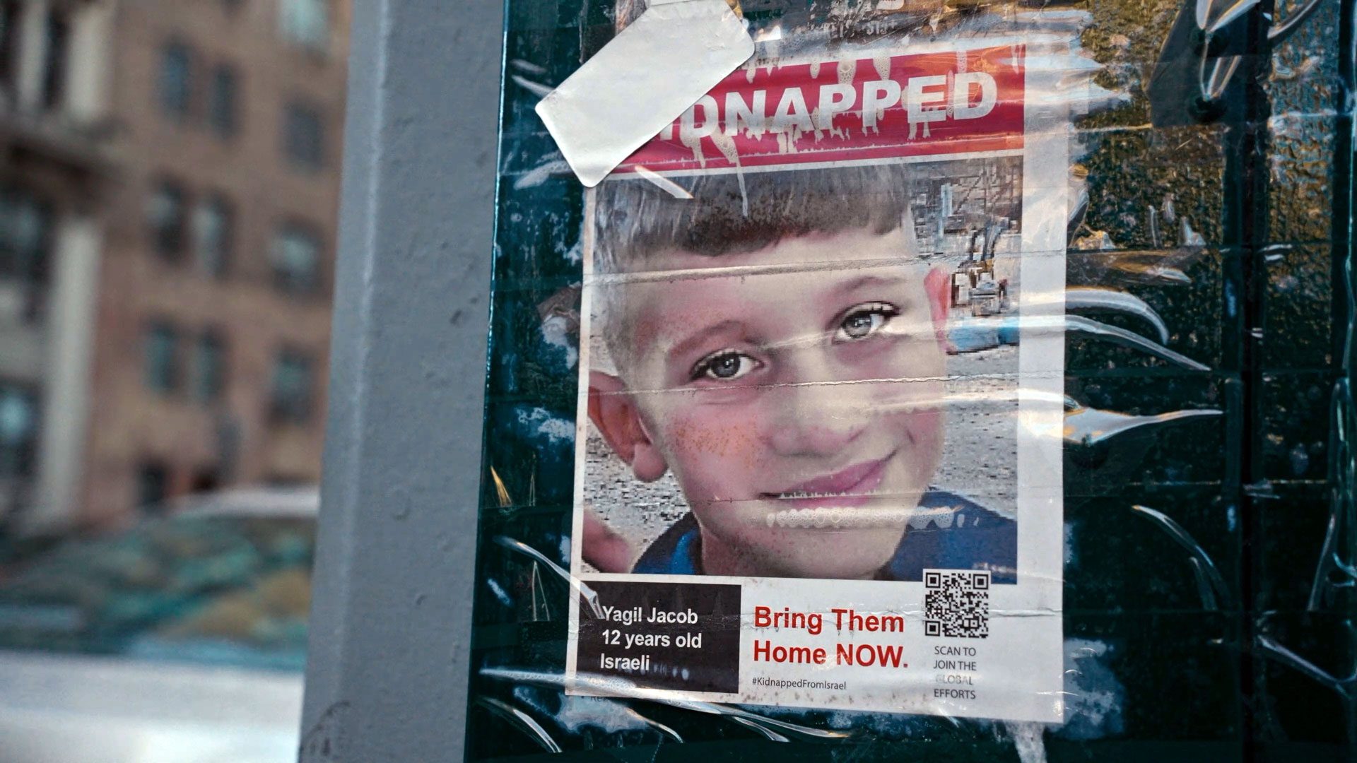 הסרט עוסק בהשחתה מוסרית ופתיחת זירת לחימה מטאפורית בכל הקשור למהלכים האקטיביסטיים של תומכי ישראל בארצות הברית, במקרה הספציפי שלו – השחתת שלטים עם פניהם של החטופים בניו יורק. הסרט, שנפתח מעדויות של מקורבים לחטופים, הולך ומתפתח לכדי הבנה שחזית המלחמה היא גם בתפיסת העולם את האירועים, ובאופן שבו ההמון הגלובלי נוקט צד ״תלוש״ ובעל גוון אנטישמי מובהק.