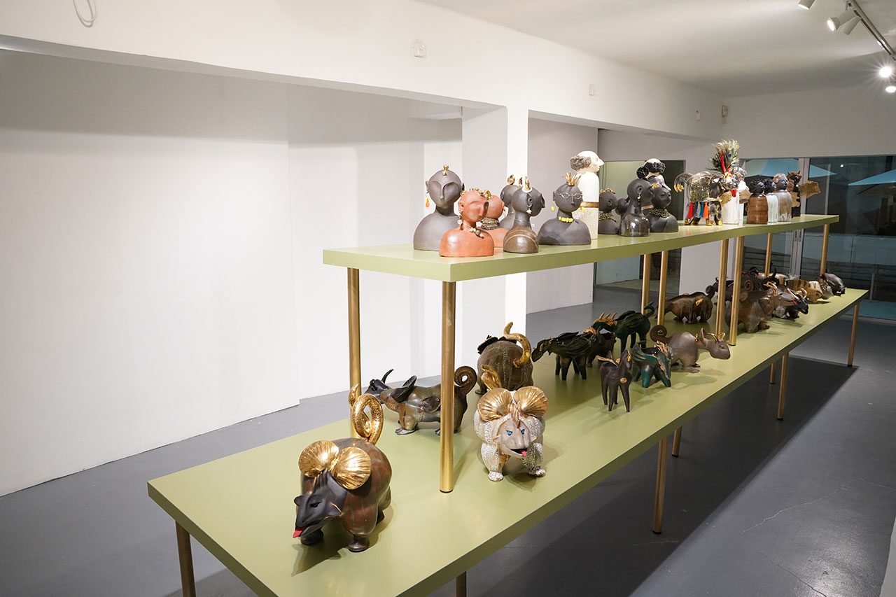 חלל התערוכה כולל שולחן מוזהב שעליו מוצגות מקבץ המפלצות הדמיוניות, כשהן פוסעות על גבי השולחן. מעליהן תלויות פיגורינות פולחניות (דמויות קטנות), שנועצות מבטים בתהלוכה הסוריאליסטית שמתחתיהן. התצוגה הצפופה על גבי שולחן מוזהב מאזכרת חדרי פלאות שרווחו בתקופת הרנסנס, שבהם האצילים והמלכים הציגו מגוון מוצגים מעולם האמנות, הטבע והעתיקות – לשם הפגנת עושרם המופלג.