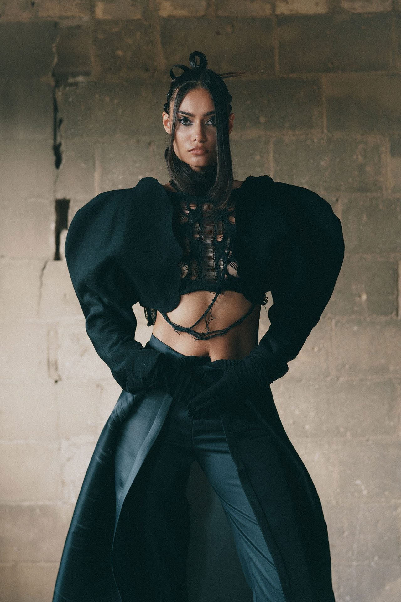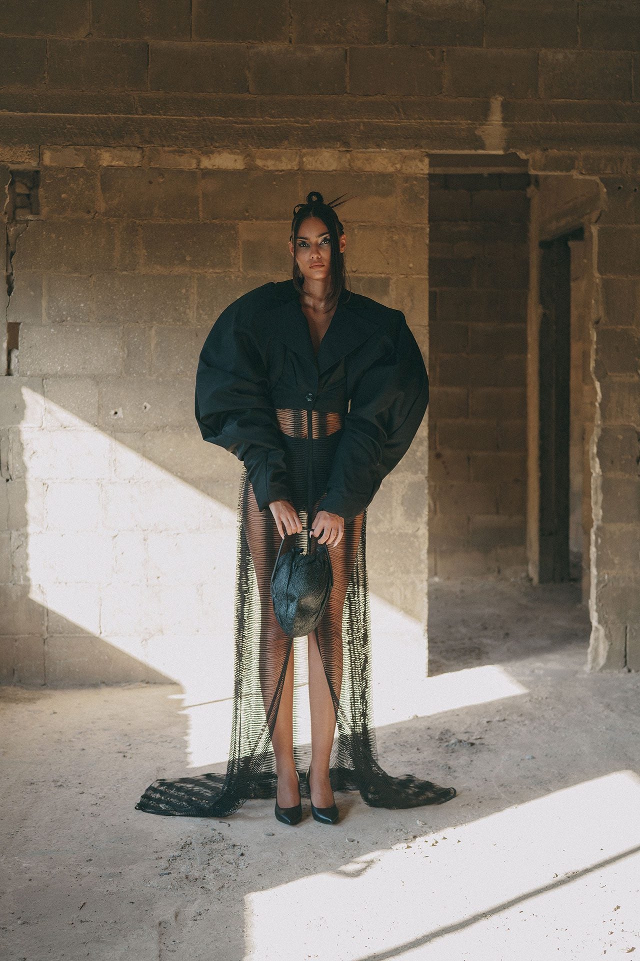 השימוש בחייטות מדויקת וטכניקות מסורתיות מאפשר לי ליצור פריטים שהם גם פיסוליים אבל גם פונקציונליים ונוחים. השילוב הזה מסמל בעיניי את החיבור בין ישן לחדש -שמירה על המסורת תוך יצירת חוויות חדשות שמאתגרות את תפיסת האופנה הקלאסית. את הכל תפרתי לבד בדם, יזע, ובעיקר בדמעות 😂