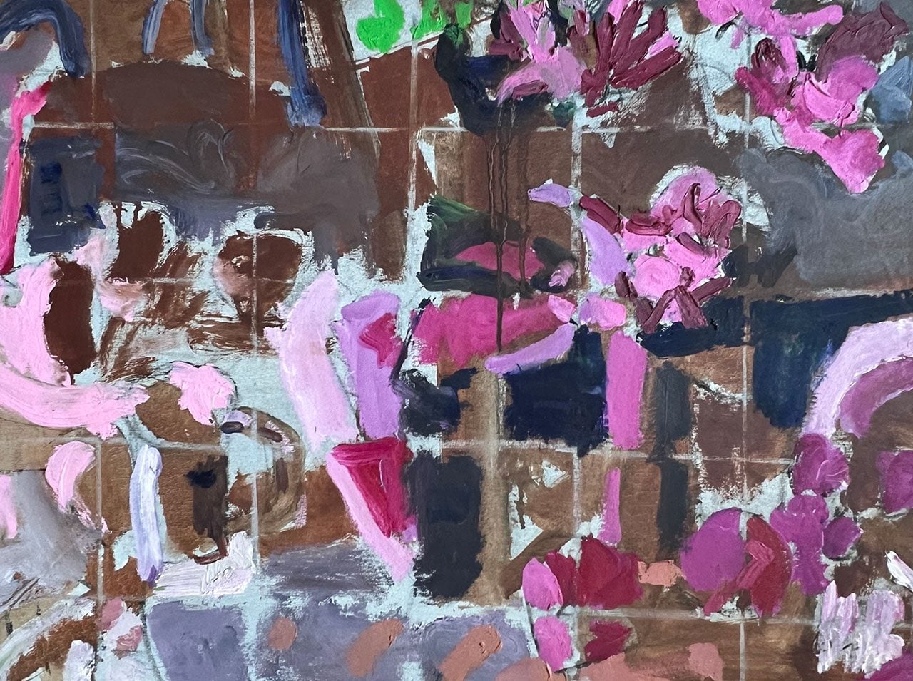 אני מציגה עד סוף נובמבר תערוכת יחיד בגלריה מרי, גלריה שיתופית בירושלים שאני חברה בה. בתערוכה ״אשר הביא הגשם״ מוצגות עבודות מהשנה האחרונה. חיפשתי איך לפרק, לעוות קצת ולערער את הדימוי יחד עם השארתו כשלם. הציורים כוללים צבעוניות רבה וגדושים בחומריות.