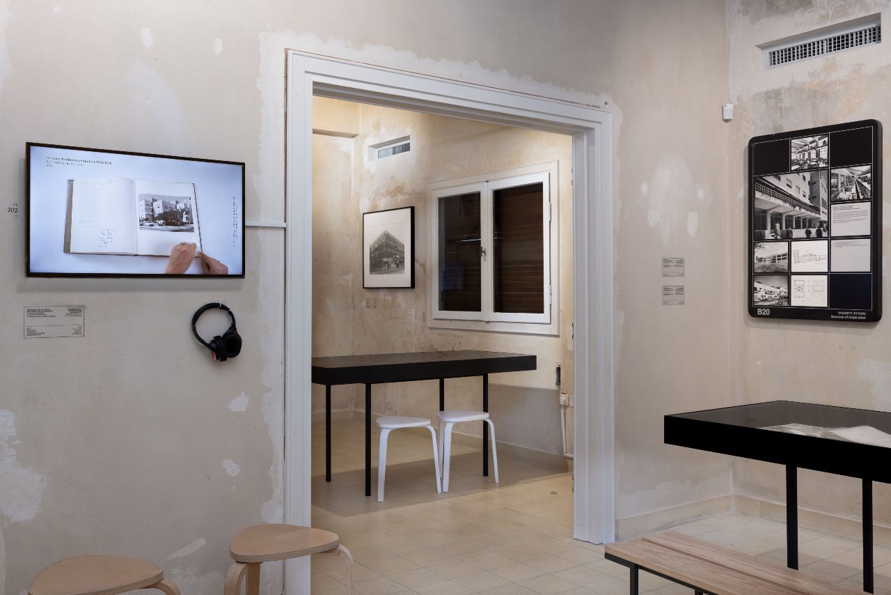 ״מפרספקטיבה של עשרות שנים ניתן לראות שחלקם נקטו בגישה תיעודית ולעתים ביקורתית, וחלקם בגישה אמנותית יותר, שבאה לידי ביטוי בהתמקדות בפרטי פנים וחוץ של הבניין. כך או כך, הצילום שימש כלי רב עוצמה בתיעוד תנועות אדריכליות, השפיע על התפיסה הציבורית, ובעיצוב הזהות האורבנית והזיכרון, ואת ההשפעה המתמשכת של הדימוי על האופן שבו אנו רואים ומשמרים את האדריכלות המודרניסטית כיום. בכניסה לתערוכה, ליד הטקסט האוצרותי תלויות שלוש עבודות שבהן מצולם רחוב אנגל 5, בית אגינסקי – שאותו צילמו כל החמישה. בקטלוגים נדירים של תערוכות שהציגו בעבר, ששילבתי בתערוכה, כולם פתוחים על העמוד של אנגל 5 – כדי להדגים זאת״, מדגישה יוסיפון גולדמן.