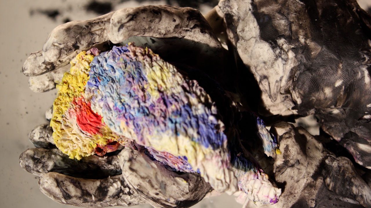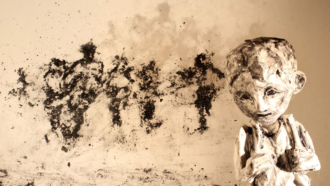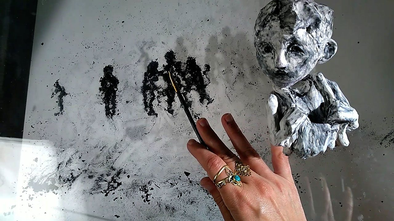 באותה השנה התנסיתי בהנפשת חומרים רבים, ביניהם אנימציית אבקות שהייתה חביבה עליי במיוחד. ריסקתי פחם וניסיתי לבדוק איך אפשר לשלב את החומרים. מצא חן בעיניי שבעזרת ״איפור״ בפחם הפלסטלינה נראית אחרת, והרגשתי שהפחם קושר את האובייקטים הלבנים זה בזה.