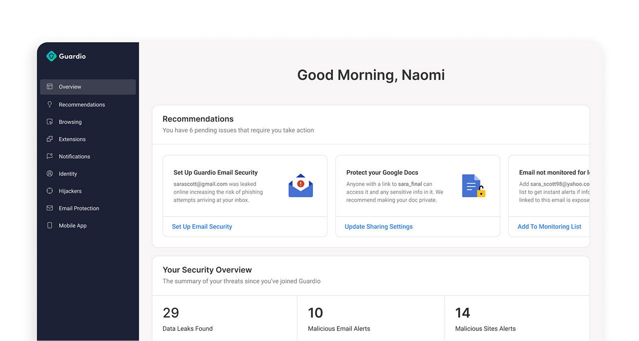 ״ולמרות שבדרך כלל אנחנו באים עם בשורות רעות, אנחנו לא רוצים שתיבהל כשאתה רואה הודעה מגארדיו על המסך או מקבל מאיתנו מייל. אנחנו רוצים להזהיר אותך ולהרגיע ולהגיד שאנחנו פה; לתת לך ערך ולספר מה אתה יכול לעשות כדי לשמור על עצמך״.