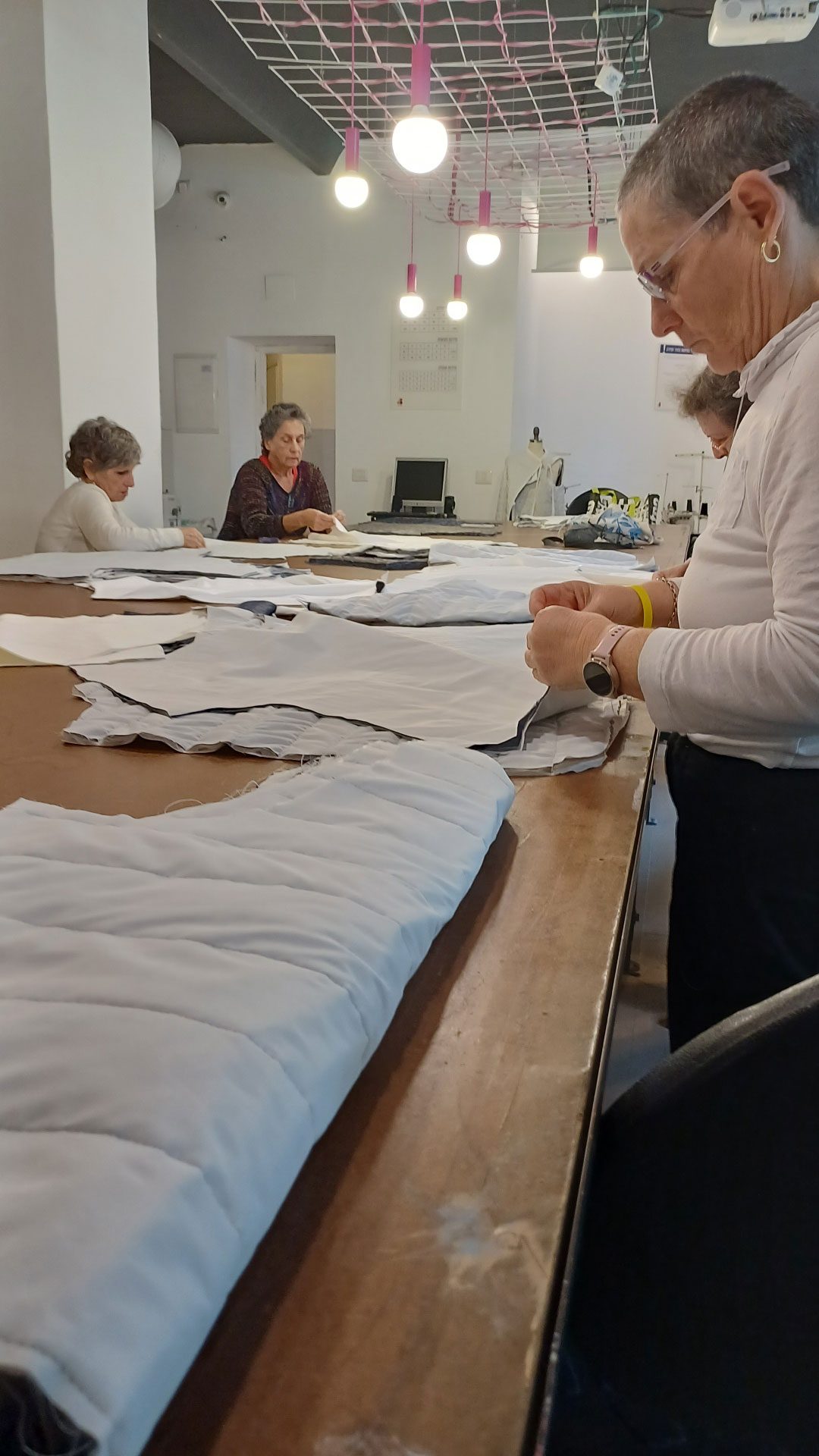 ״עד כה ובמשך שלושה ימים תפרנו 50 אפודות. אנחנו חייבים להספיק ולתפור לפחות עוד 50 כאלו. אני אוהב ללמד, אבל מיזמים חברתיים חשובים לי לא פחות. אנחנו זקוקים למתנדבים בעלי ידע בתפירה שיסייעו בתפירת האפודות הלבנות״.