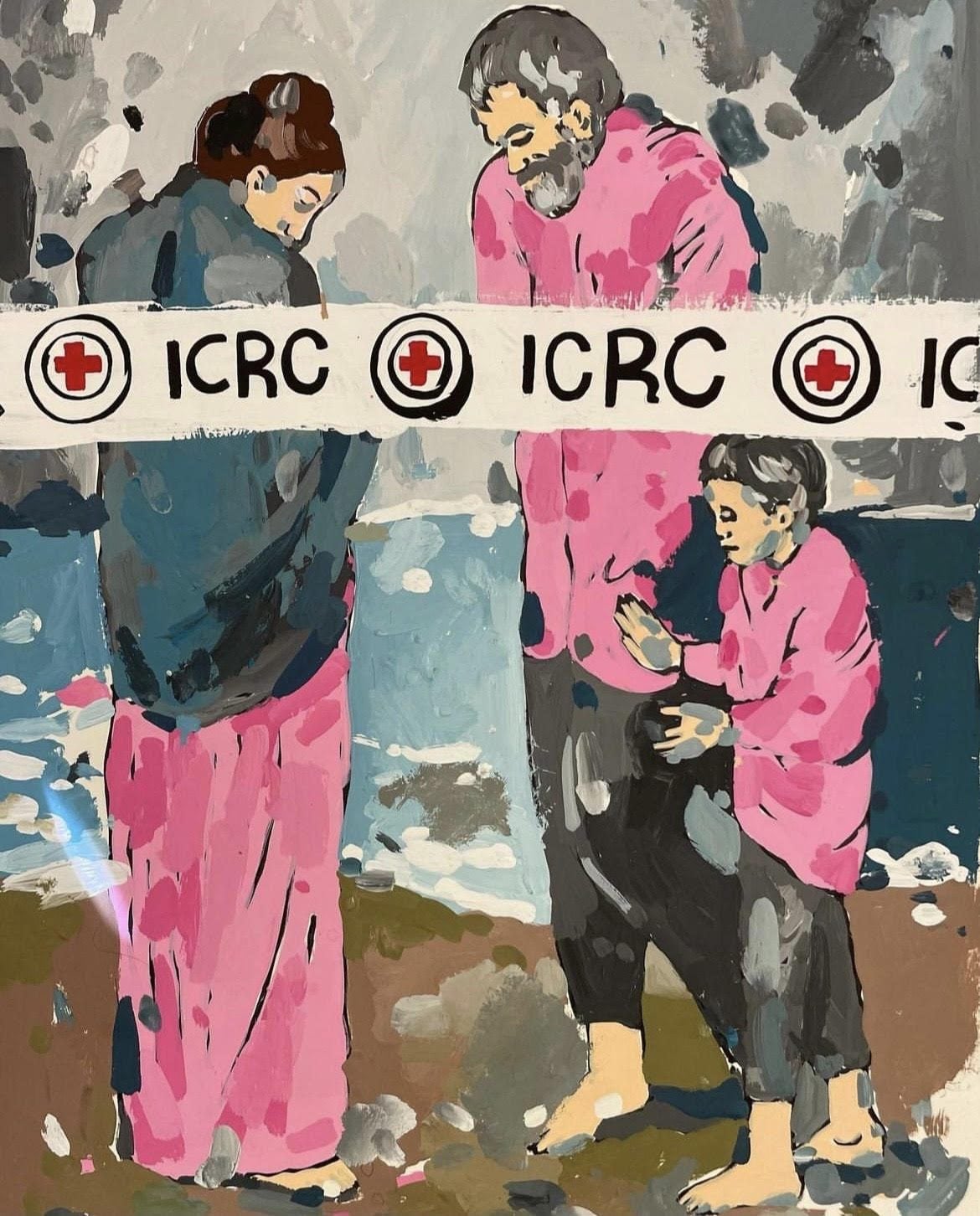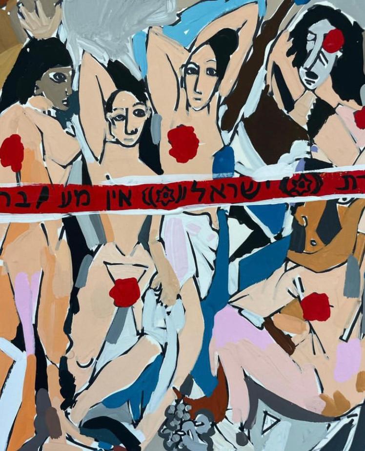 קרן: הפעם לא הורדתי את הציור. אני חושבת שאנסו פה ילדים ונערות ונשים, רצחו וטבחו… ציירתי את העלמות כי בעיניי המחבלים הנאצים לקחו אותן ועשו בהן מה שרצו, מפקיעים את הגוף והנפש. הן כמובן קדושות בעיניי. הציור בא להראות לעולם למה הפכו אותן, ילדות שלא עשו מאומה