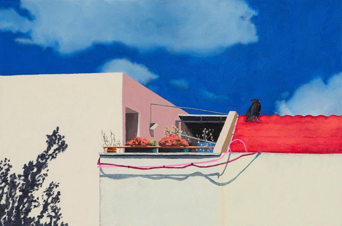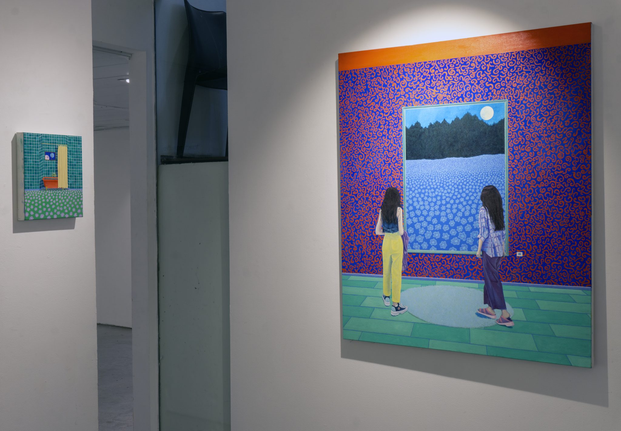 חגית: מכיוון שפגשתי קודם את הציורים שלכן – אני יכולה דווקא להצביע על השוני ביניכן: שתיכן ציירות ״ריאליסטיות קלאסיות״, אבל אלישבע נוטה לנופים אורבניים וקונקרטיים, בקנה מידה ״ביתי״ ומשם יוצאת לסוריאליזם עדין. שרה מציירת בגדול מאוד ונוטה לסוריאליזם פסיכדלי.
