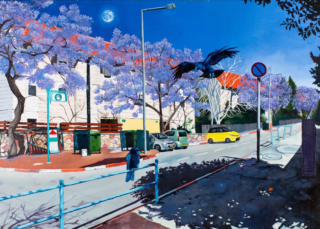 אלישבע: הסגנון הוא דבר אינטואיטיבי שהתפתח, עם אובססיה לצבעוניות, לדמיון. וזה נכון שההתמקדות בסביבה מושכת אותי. אני משחזרת לתוך הציור את הרגשות, הרגש שחשתי כשאני עוברת במקום המצוייר