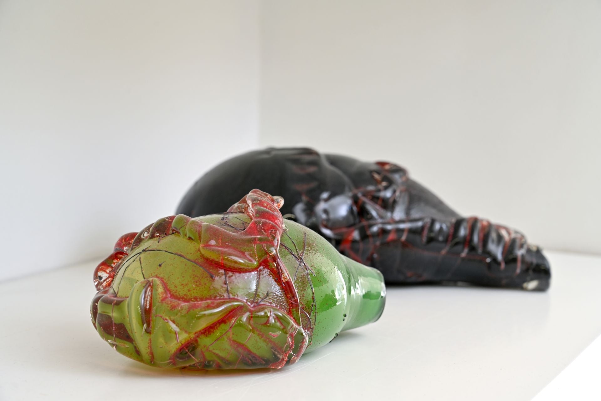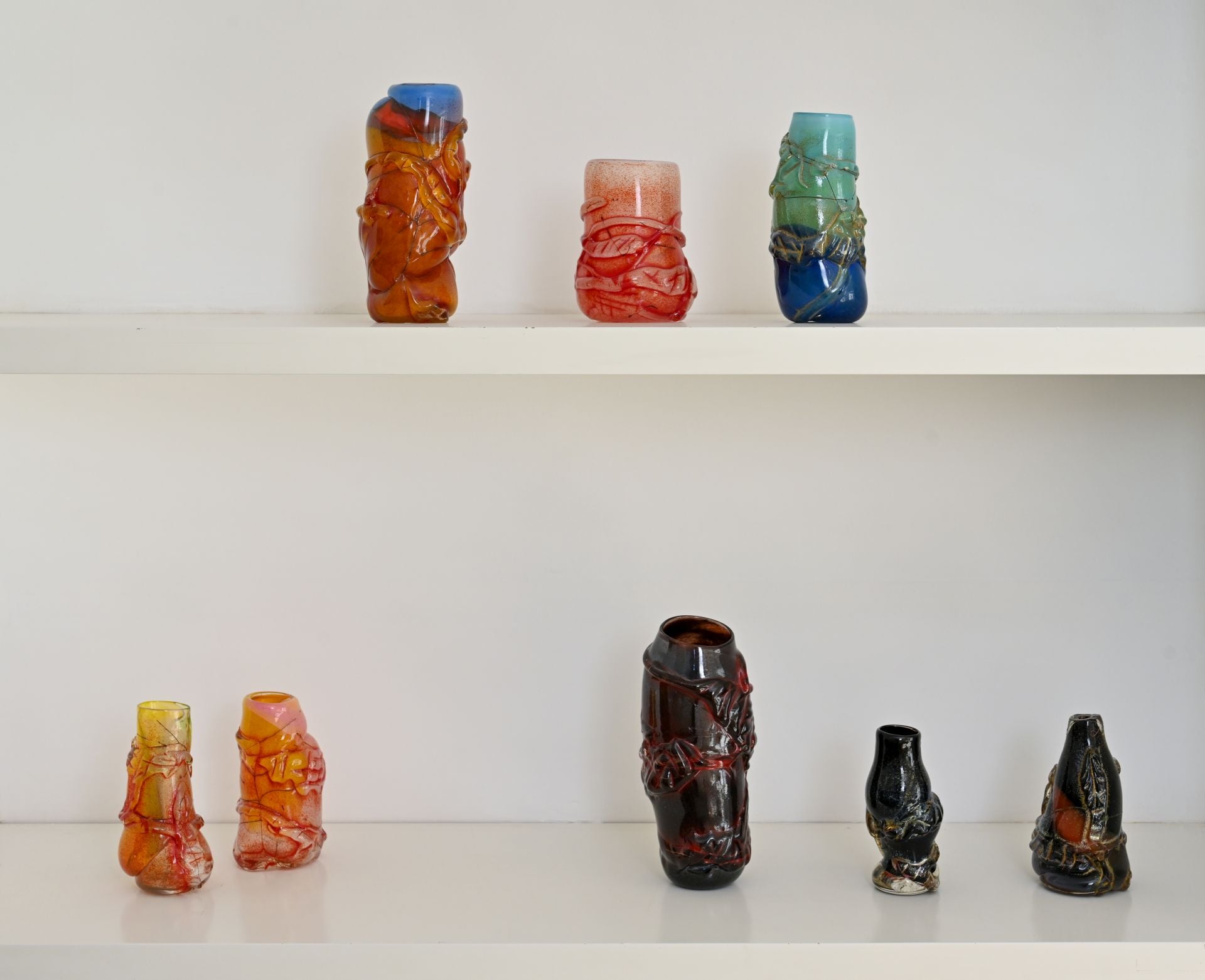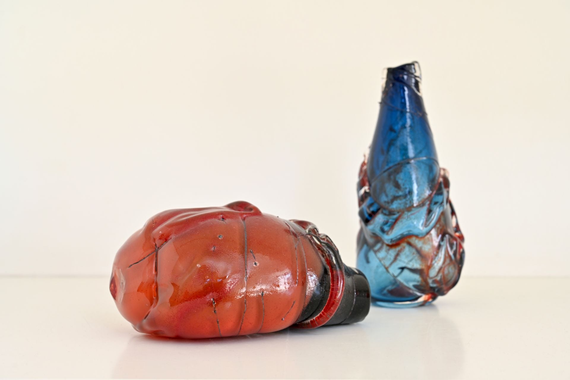 רובין פנטופרו היא אמנית ניפוח זכוכית. בתערוכה מוצגת סדרת אובייקטים הנראים אורגניים, המונחים על מדפי הגלריה כאיברים פנימיים בודדים המעידים על מסעם. הם מעבירים תחושה של פציעה, איבוד אוויר ואפשרות הכלה, אבל הזכוכית הנשגבת באופיה מעדנת ומחליקה את הכאב. פנטופרו מצליחה לבלבל בין כאב להדר האובייקט/האיבר. האובייקטים שלמים ומבריקים, בעלי צבעוניות פראית אך טבעית.