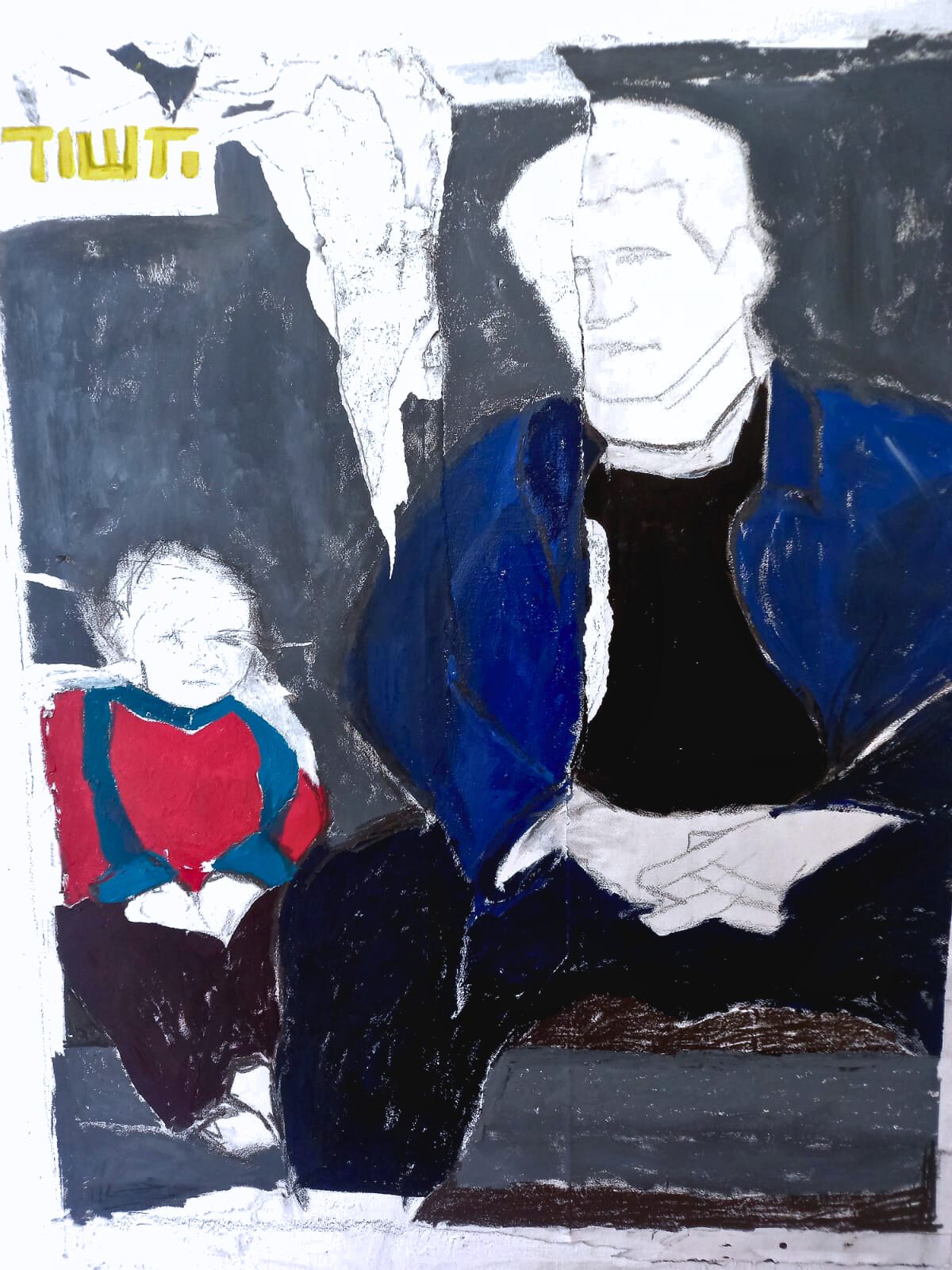 בימים אלה אני מציגה תערוכת יחיד בגלריה מזו בחיפה, שנקראת ״רק רגע״ (אוצרים: ליאור איתן ויעל סעדי) והיא אכן עוסקת ברגע אחד, רגע של פרידה. התערוכה קטנה ואינטימית ויש בה כמו סצנה אחת שיצאה מתוך תמונה. זו תמונה שהולכת איתי הרבה שנים: אבא שלי, שחי בהולנד, ואני, מחכים בתחנה לאוטובוס שייקח אותו לשדה התעופה ומשם חזרה להולנד. זהו רגע של המתנה, שנייה לפני פרידה.