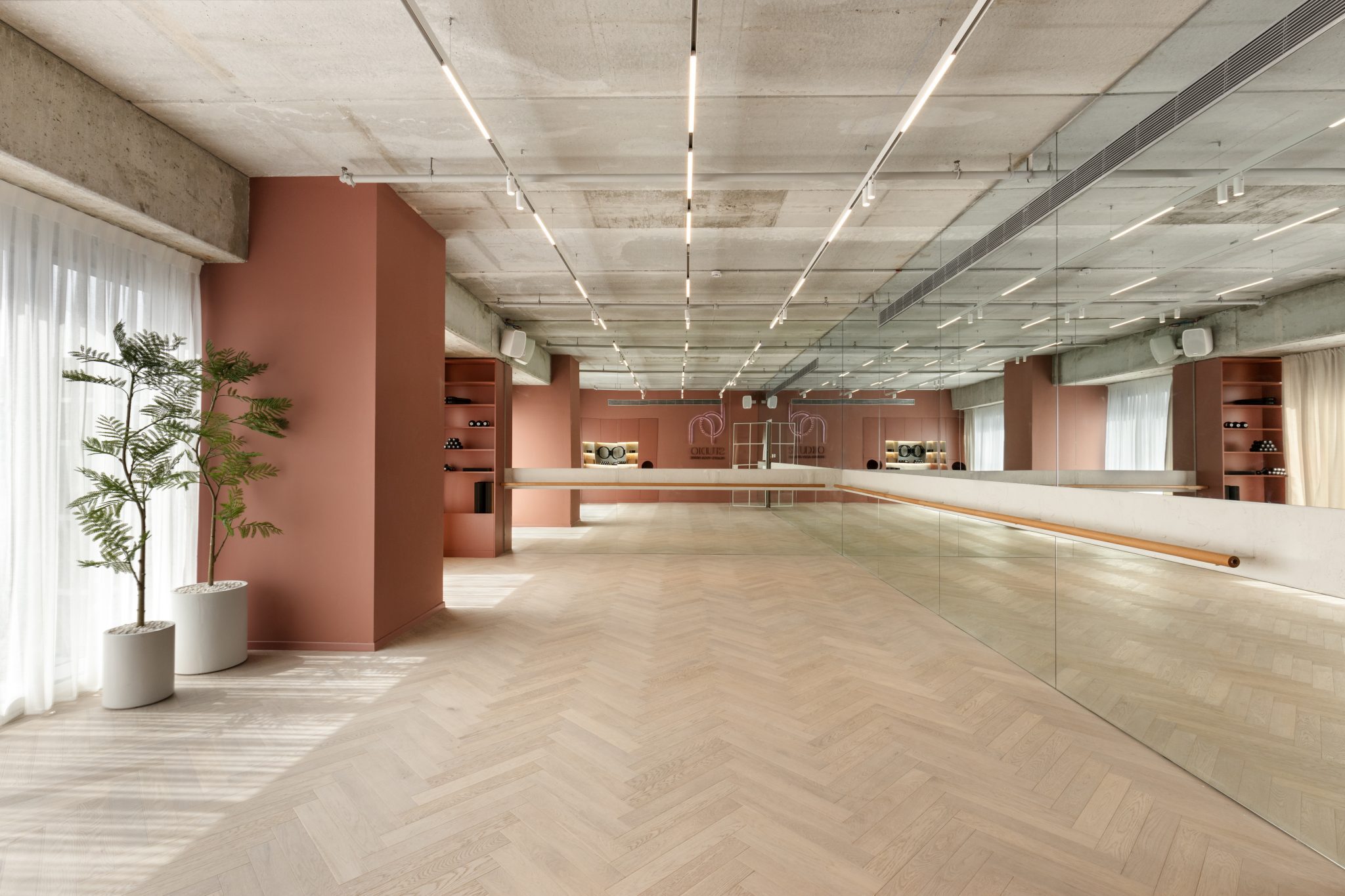 BON STUDIO הוא אחד מעשרות פרויקטים מסחריים שתכננתי מאז פרוץ המלחמה. הסטודיו, שמתמחה בפילאטיס ויוגה, הוא לנשים בלבד. שטחו 250 מ״ר והוא ממוקם במגדל הכשרת יישוב בבני ברק, משקיף אל הים וכולל חלל קבלה, מלתחות, תאי הלבשה ושני חללי אימון – פילאטיס מכשירים ויוגה/בר, בעיצוב מוקפד היוצר תחושת רוגע, טבע ונשיות.