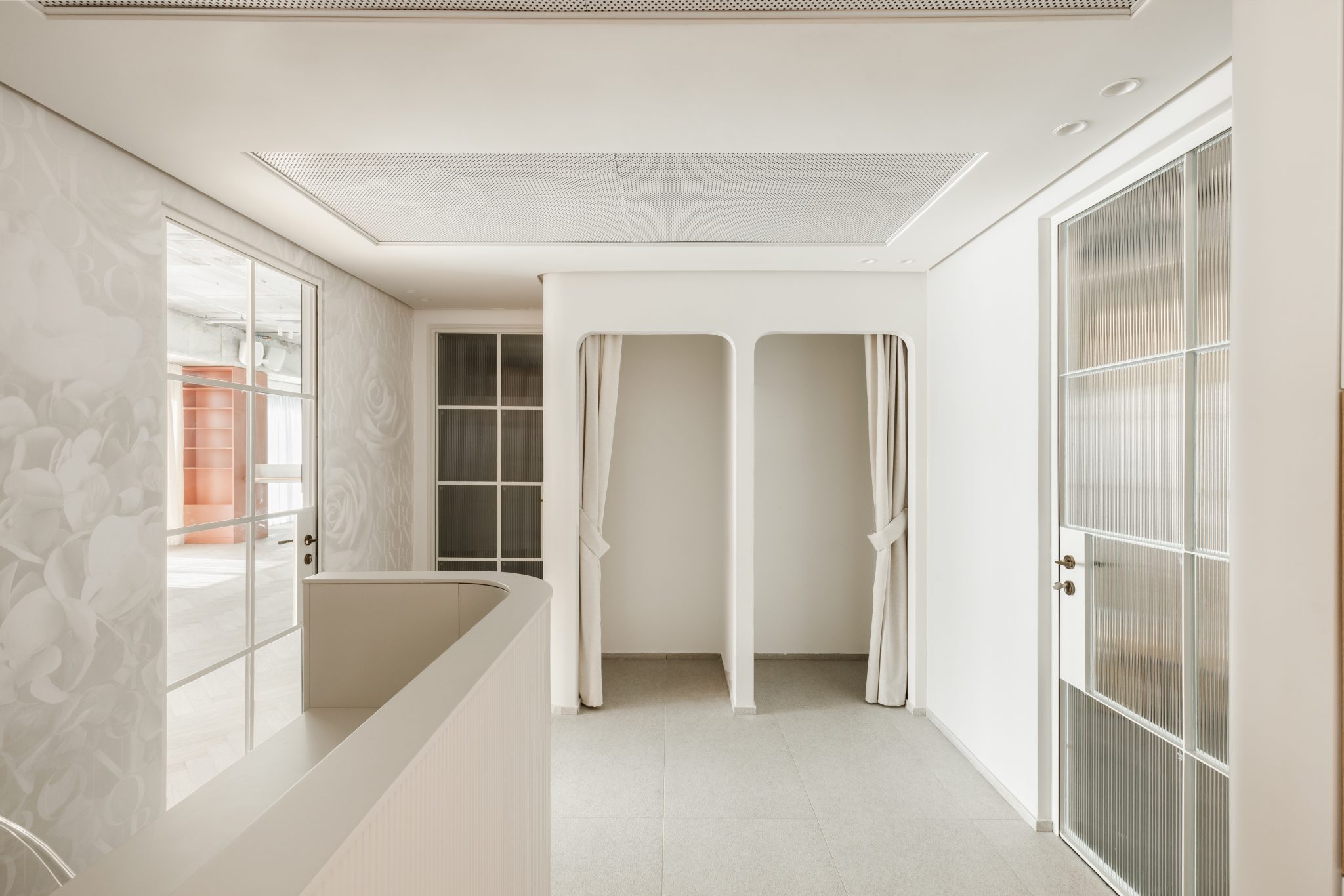 הגוונים שנבחרו, ביניהם אפרסק־ורדרד רך, מחזקים את התחושה הנשית והעוטפת של החלל. הוורוד, בגווניו הטבעיים, אינו רק צבע – אלא אנרגיה. הוא משרה רוגע, חמימות והרמוניה, ומאפשר למתרגלות להרגיש בטוחות, נינוחות ופתוחות לתהליך.