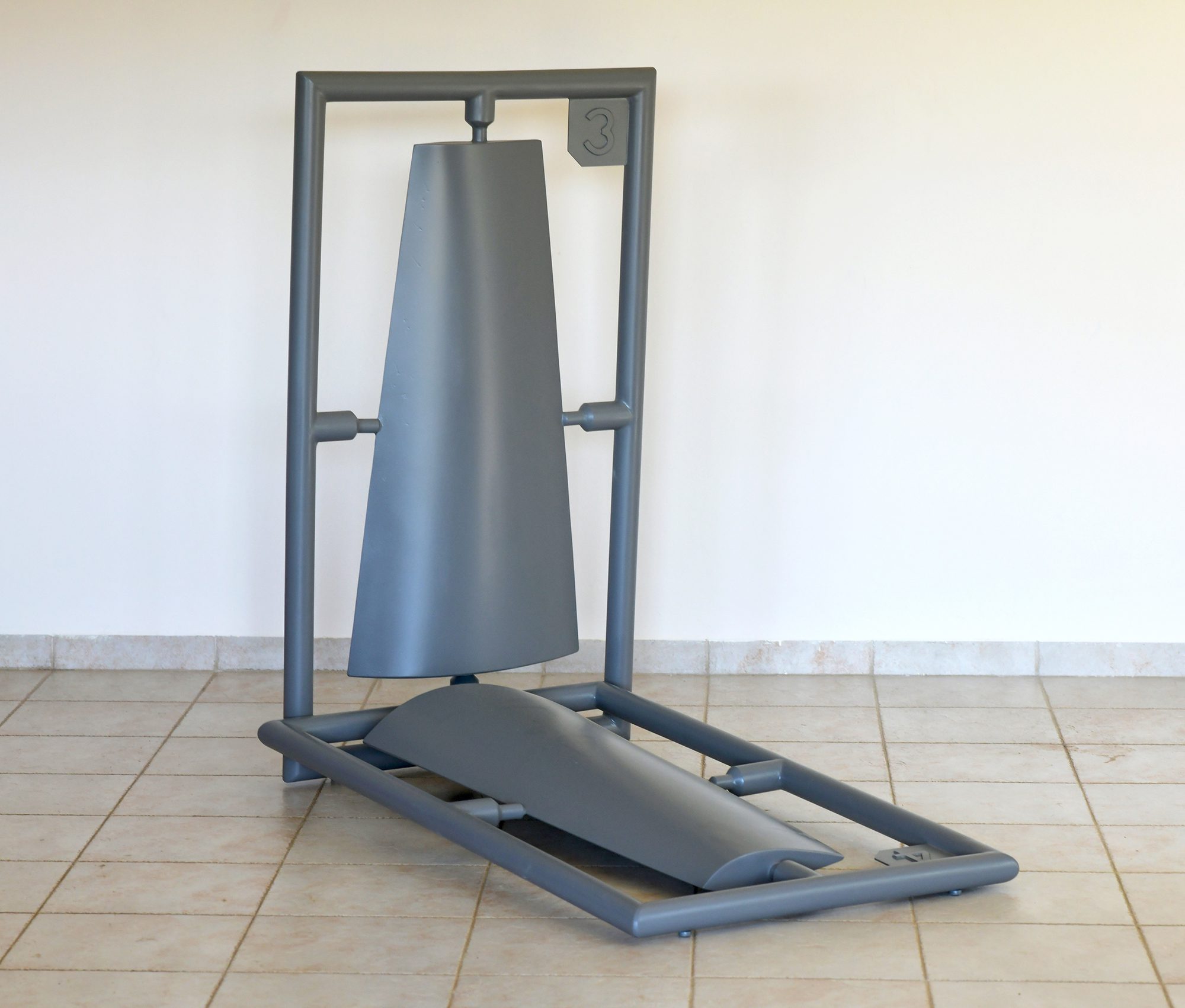 באחד מאתרי החדשות נחשפתי לתמונה של כטב״ם אויב שהתרסק באזור כברי, שניכר בו שלא נשאר כלום מהכלי מלבד הזנב שלו. הזנב היה מורכב משתי כנפיים שניצבות אחת לשנייה ומדחף שבור. איכשהו נוצר לי חיבור בין פסל הברונזה, הגדול היפה והיציב, לשבר הטיסן המאולתר של חיזבאללה. בשיחה עם האוצרות החלטנו שזה כיוון יותר מתאים לתערוכה וכך התחילה העבודה על הפסל.