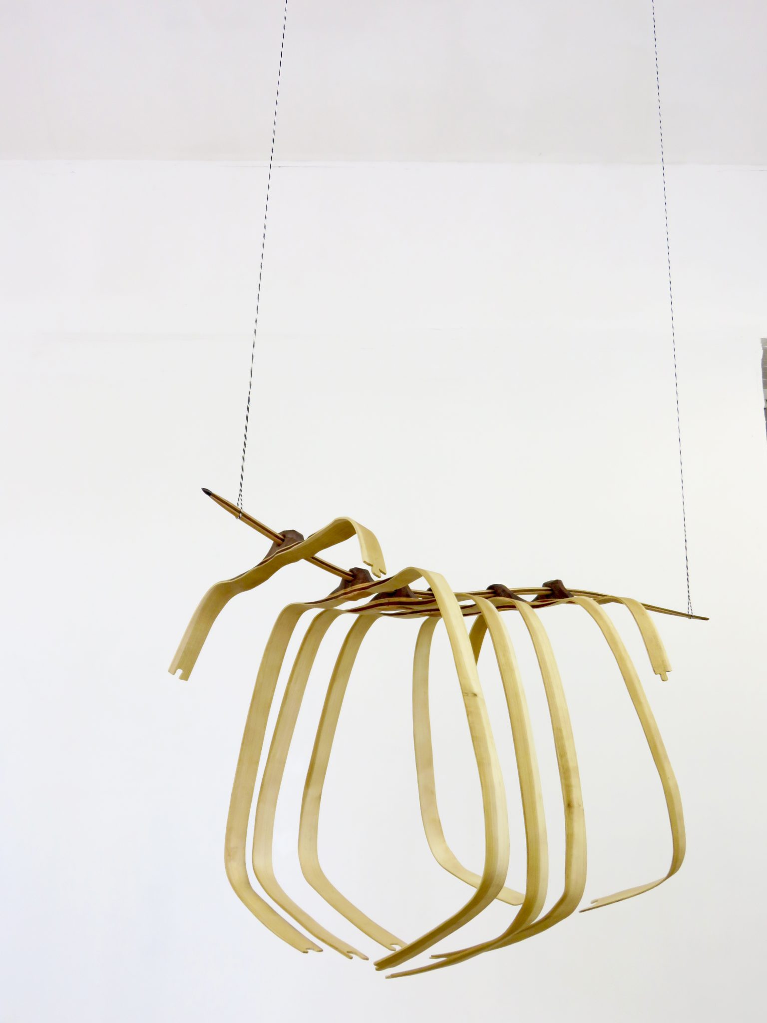 חלקי הפרה (ראש וצלעות), עברו מהפך חומרי מהעצם הלבנה לעצים קשים המשמשים בריהוט יוקרה, כמו אגוז ומהגוני. העצים כופפו והודבקו בלמינציה בתוך תבנית בטכניקה ששאבתי מתהליך בניית קשתות וחיצים.