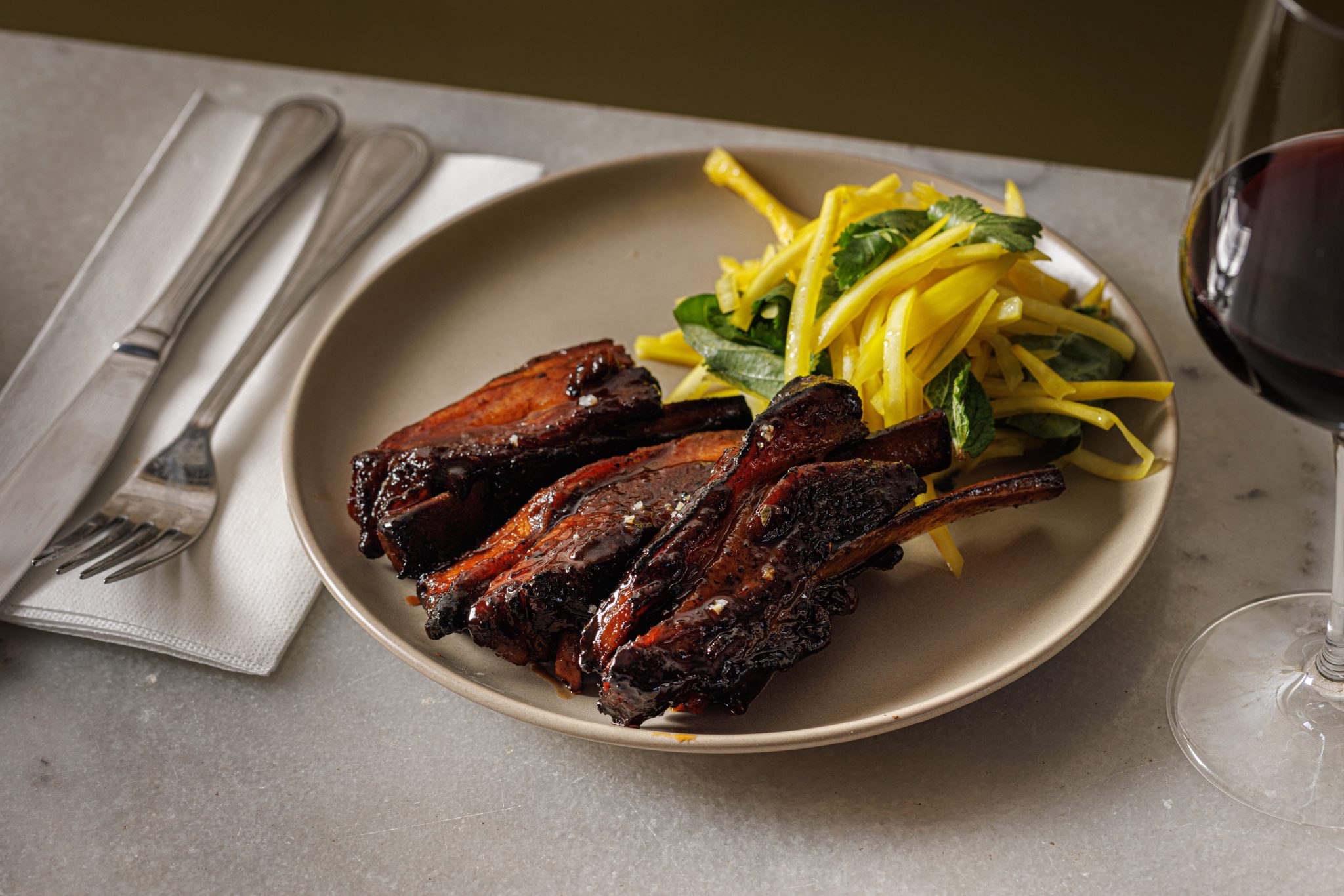 אלעזר: בטח, די.אן.איי חריף, חזק, מתובל, תוסס, הרבה תערובות של תבלינים, דגנים, קטניות ורטבים. למשל, יש לנו שיפוד קצבים סו־יה (SUYA, לא סויה) – הוא מוגש עם תערובת תבלינים שמבוססת על בוטנים מהמטבח הניגרי; זה ה״ברביקיו״ של האפריקאים. אנחנו מגישים את זה גם עם צ׳יפס פלנטיין – סוג של בננה שפופולרית מאוד באפריקה וגם בדרום אמריקה והשימוש בה הוא כמו בתפוח אדמה.