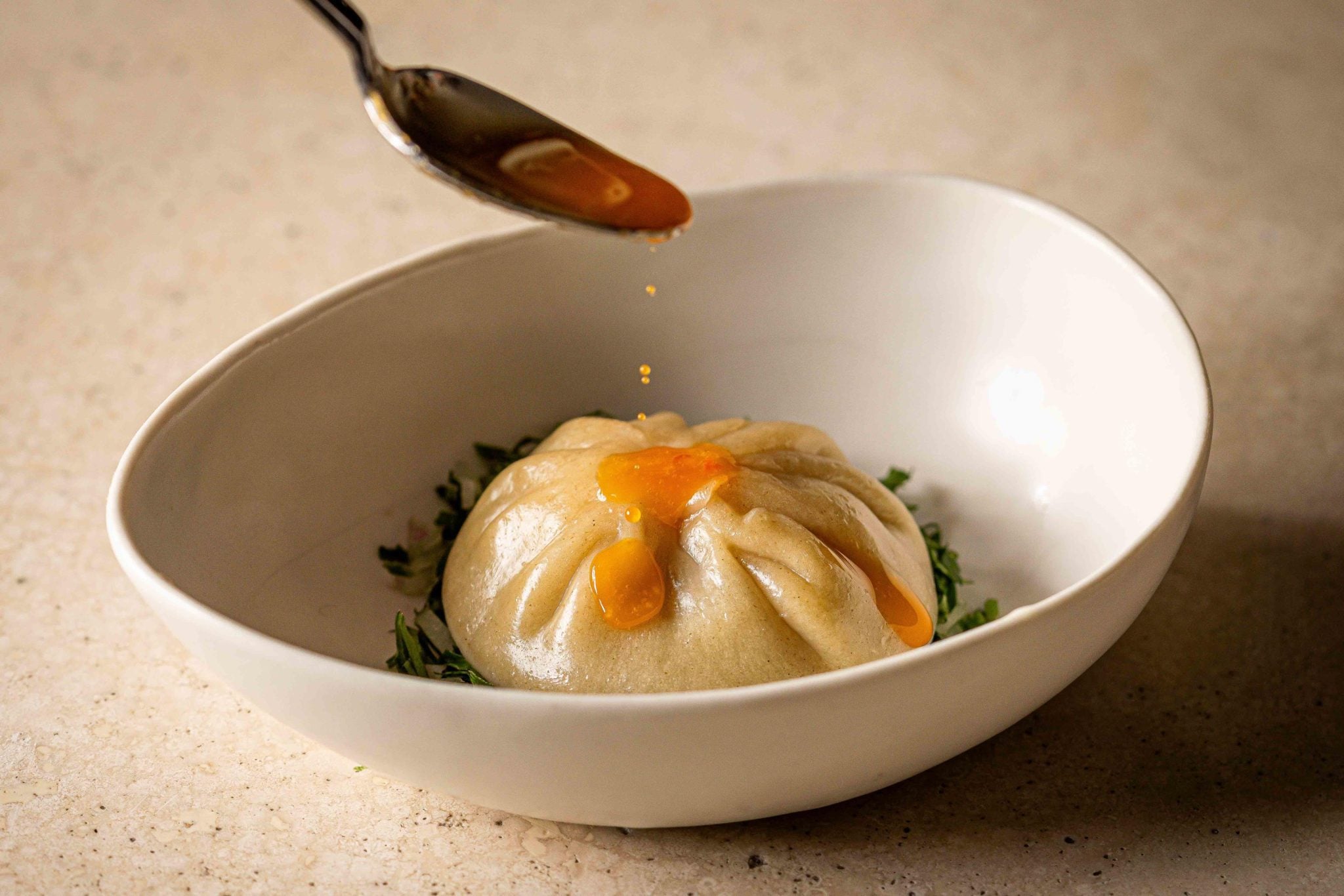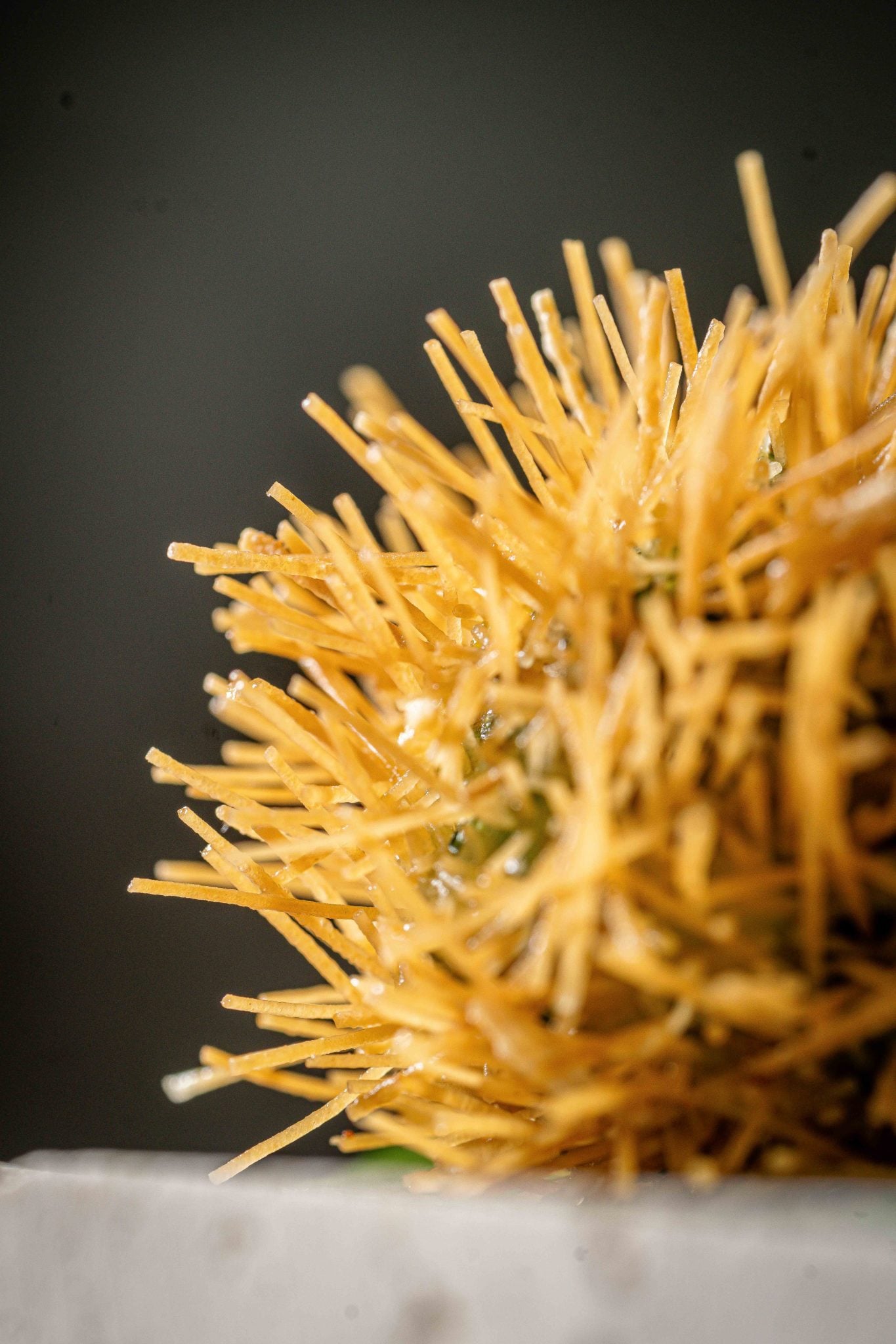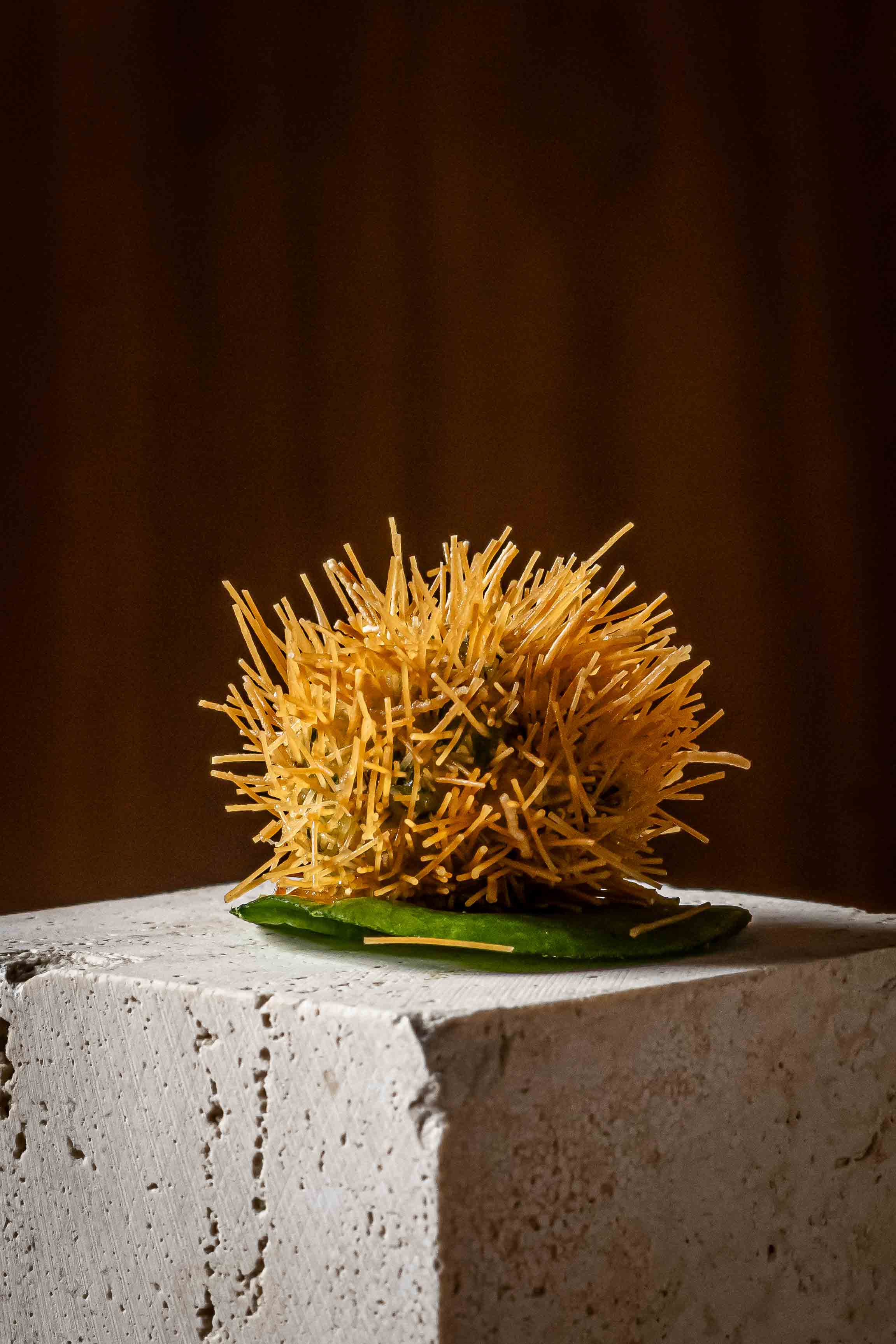 קיפוד שרימפס, אלא מה: כדור של קריסטל שרימפס טחון שבליבו קארי ירוק מגלנגל, כפיר ליים טרי ומקומי, ג׳ינג׳ר, למון גראס וכוסברה. את כל זה עוטפות אטריות ורמיצ׳לי.