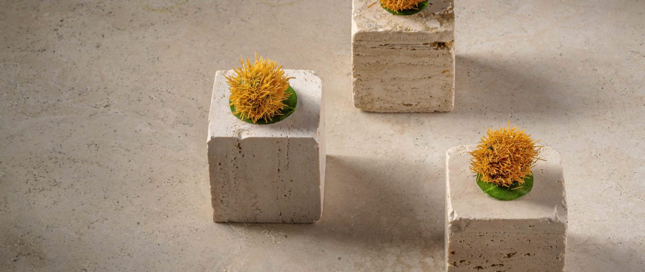 - גם מנת הטופו אפונה צהובה נולדה מאותו המקום – אחרי שחזרתי מיפן וראיתי שם מבחר מסחרר של סוגי טופו – רציתי להכין טופו מקומי, אותו אנחנו חותכים לקוביות, ומגישים עם קוג׳י אורז מותסס, במבו שוט וג׳ינג׳ר.