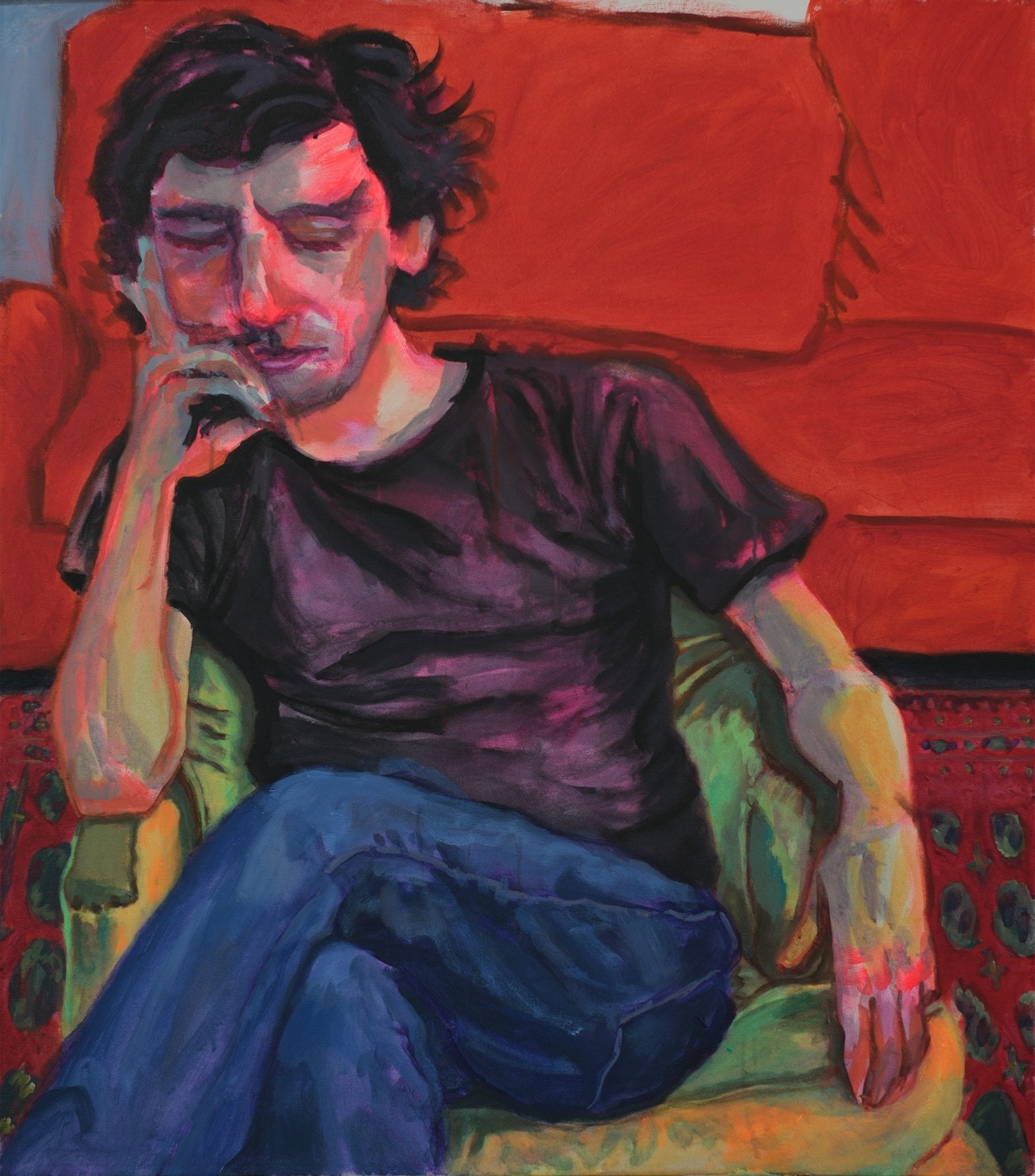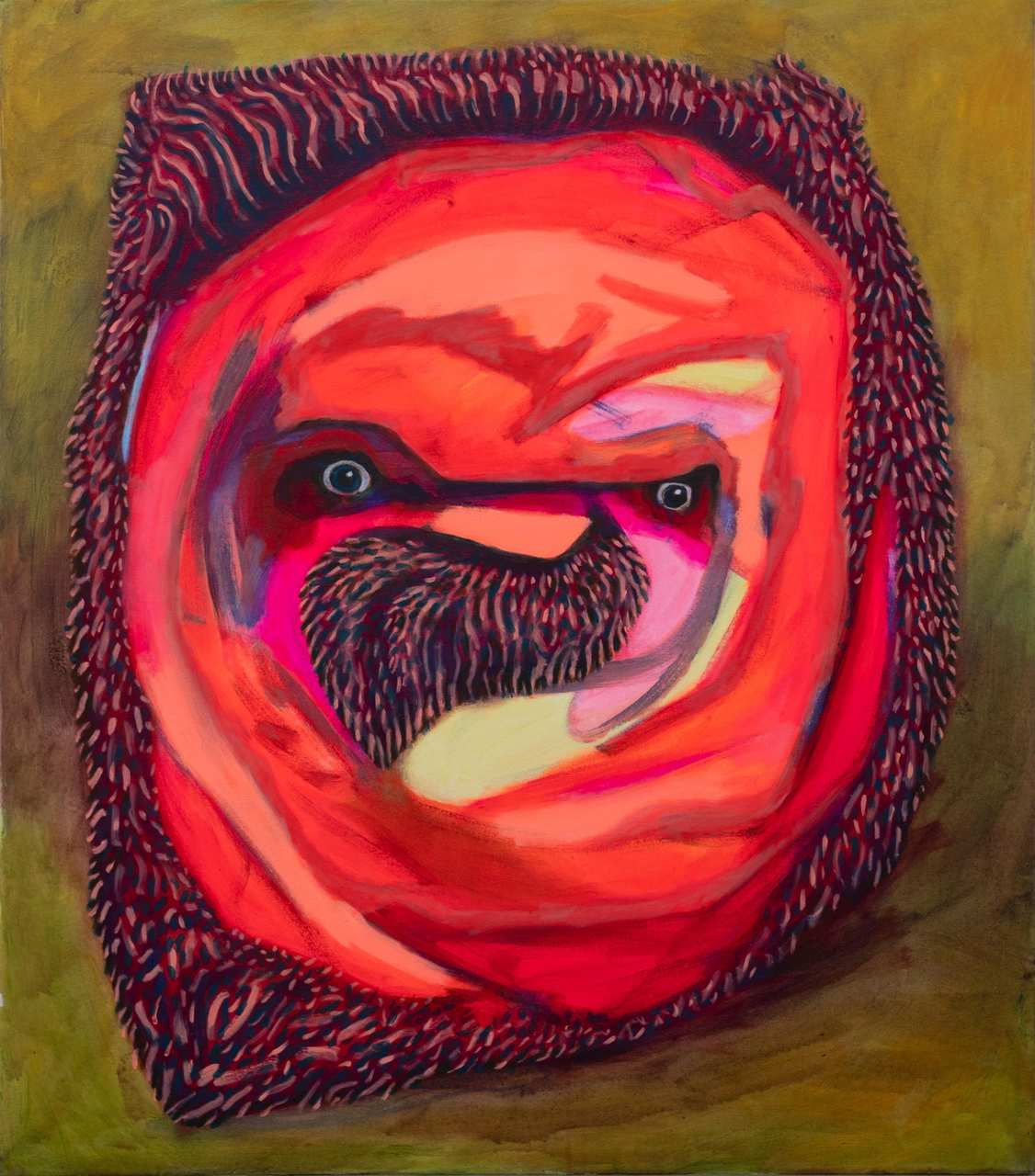 חגית: הצבעוניות הזו וגם השיבוש בדיוקן הקלאסי מרמזים על ציור מאוד פיזי ואולי גם מהיר – כאילו הציור נדחק לצאת ולהשתלט על הבד