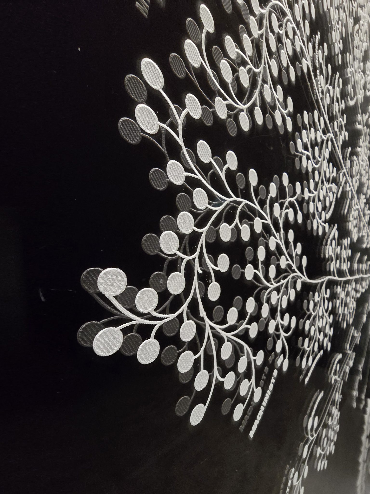 אחד האוביקטים המפתיעים בין תערוכות הביאנלה הוצג בחלל פרויקטים קטן ושקט. דימוי יפהפה של אלמנט צמחי, במה שנראה כהדפסת תלת־ממד על גבי לוח פרספקס, שהוצג תלוי בריחוק מה מהקיר והקרין את צלליו אל הסביבה.