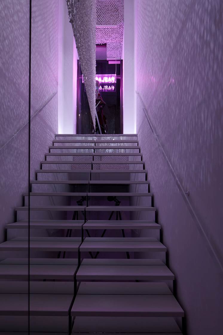 החלל של החנות מחולק לשתי קומות, קומת הרחוב – הקומה המסחרית וקומת הגלריה שמתחתיה – הקומה של האירועים והתערוכות. קומת הגלריה מעוצבת במתכונת ״ווייט קיוב״, קירות לבנים חלקים, רצפת עץ גושני, שחורה ותאורה דינמית משולבת ניאונים במקצב קבוע.