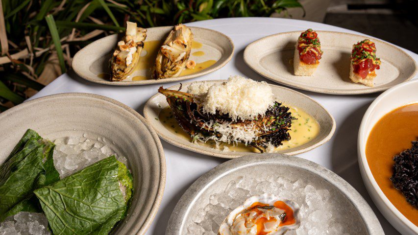 מה אוכלים פה? טרטר אינטיאס – במיה, שעועית תאילנדית, נענע, כוסברה, ויניגרט מהמזרח וקשיו; סשימי דג ים – סלטון תפוחים, סלרי, אגוזים מקורמלים ויוגורט; טונה קצוצה וספייסי מיו עם קוביות אורז קריספיות; קרפצ׳ו אלבקור – וואסבי פאקוס, יוגורט, נענע, בזיליקום, כוסברה, בצל, צ׳ילי ושקדים; סלט תאנים עם עלי חרדל, גבינת המאירי, אורגנו ודבש; סטיקי רייס פודינג עם סירופ ושמנת חמוצה ועוד.