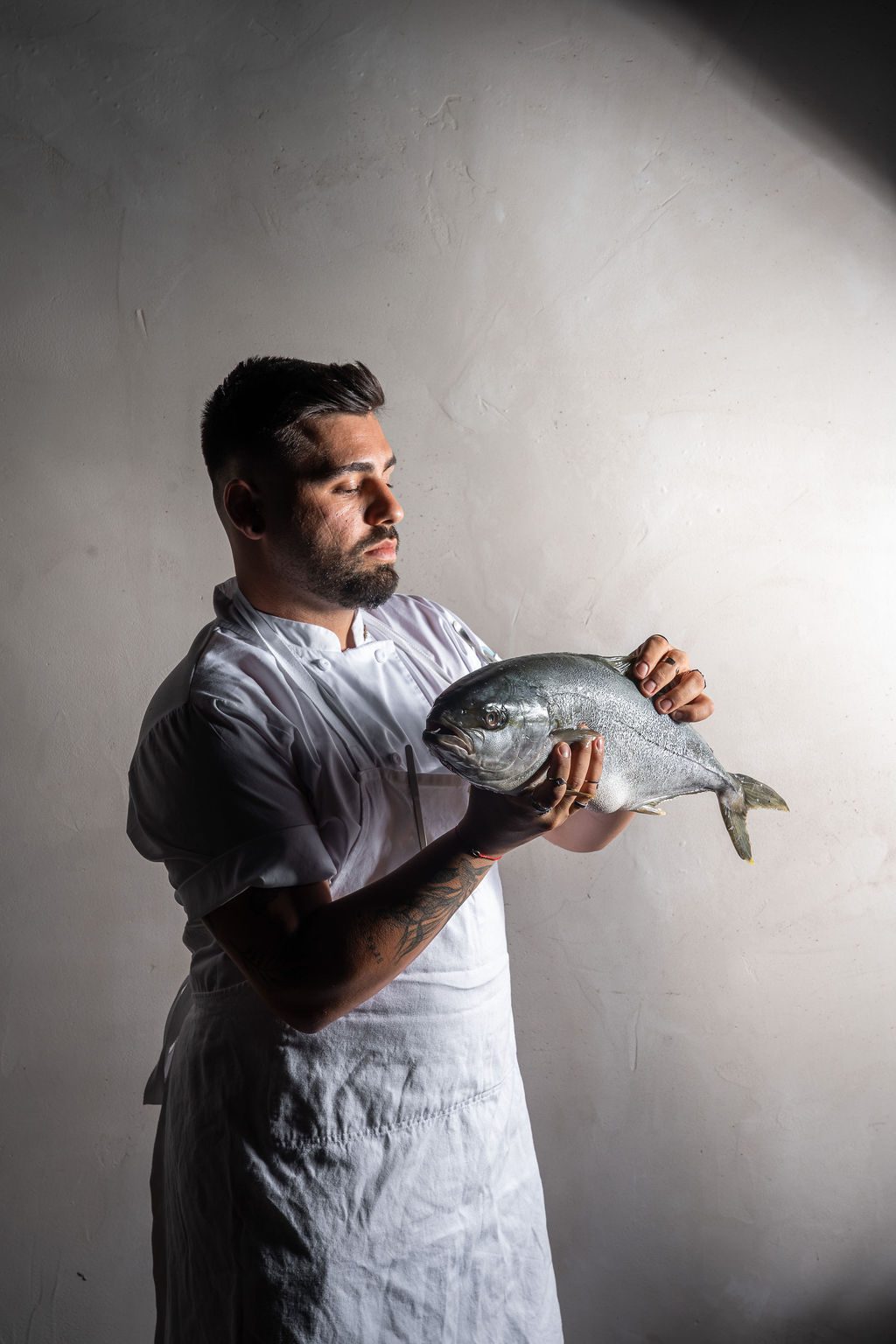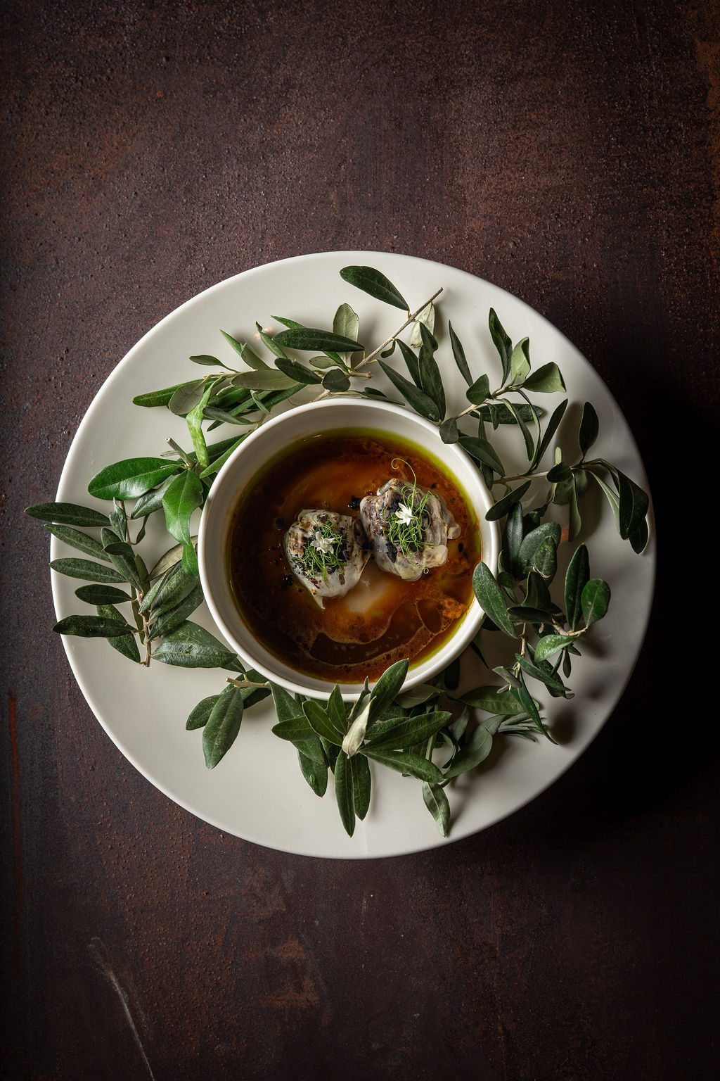 כוכב התפריט הוא שמן זית מזן פיקואל של משק אחיה (״הפיקואל מתאפיין בארומה עשירה, מעט פירותית, מרירות וחריפות מאוזנת שמעניקה למנות רובד נוסף ומעניין״, אומר בנימין). תמצאו אותו בכל מנה בתפריט העונתי, למשל: חלת בריוש מלופפת על ענף פיקואל שמוגשת לצד חמאת שמן פיקואל ואבקת טאסוס; בר ים במלח עלי פיקואל עם קריספי לחוח, איולי צ׳ילי מותסס, סלטון זיתי פיקואל ועשבים, ג׳ל יוזו וג׳ינג׳ר; כיסון כרוב ממולא במסאחן עוף מפורק, אגוזים ועלי זעתר, קרם כרוב מקורמל, ציר עוף מושחם עם פטריות שיטאקי ואצות קומבו, קרמבל עור עוף וקולי עלי כרוב (450 שקלים לסועד, לא כולל שתייה קלה, יין ואלכוהול).