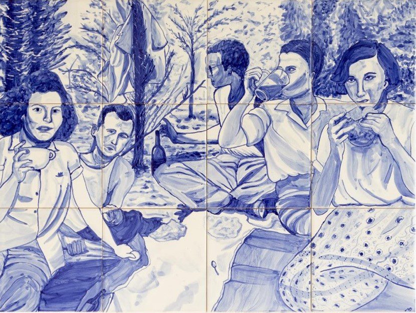 תמר: היינו בביקור סטודיו אצל יעל פסמניק ופגשנו את שותפתה לסטודיו, נעם זונשיין. היה לה ציור של סבתא שלה בפיקניק, ואת אותה תמונה היא ציירה גם על אריחים פורטוגזיים. מיד ידענו שאנחנו רוצות לעשות תערוכה על הקונספט של פיקניק