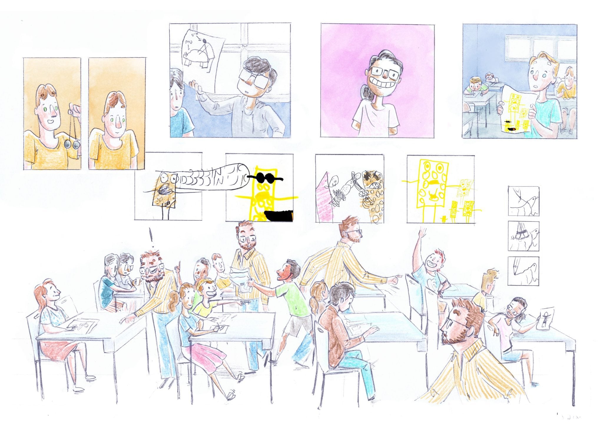 בדיוק את זה אני רוצה לשנות בספר החדש והראשון שלי ״תלמיד 07״, נובלה גרפית שמתרחשת כמעט כולה בכיתת חינוך מיוחד, וכמעט כל הדמויות בה הן אוטיסטים (כולל אני). הספר עוקב אחרי נמרוד, בוגר צעיר של אקדמיה לאמנות, שמגיע לקייטנת חינוך מיוחד על מנת ללמד תלמידים אוטיסטים איור וקומיקס. הוא מגיע לשם לא רק כדי ללמד את התלמידים איך לצייר – אלא גם איך הם יכולים להשתמש בקומיקס ככלי להשתלב, גם אם זה כרוך במאמצים או ויתורים אישיים.
