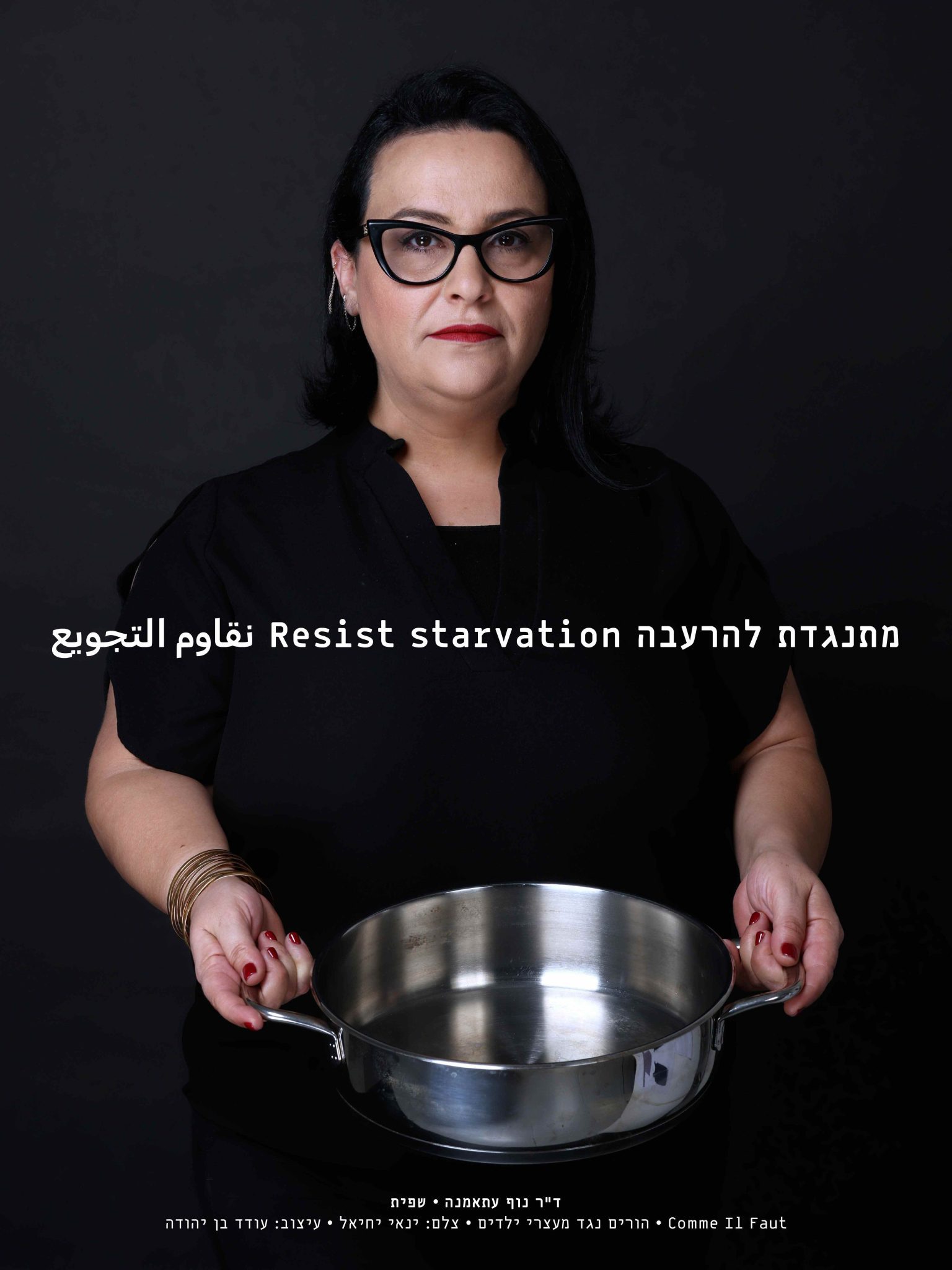 במרכז כל תמונה מתנוסס הכיתוב ״מתנגדת להרעבה״ בעברית, אנגלית וערבית. בין המשתתפים בקמפיין: המסעדנית עפרה גנור, השפיות תמר כהן צדק (קוצ׳ינה הס), ד״ר נוף עתאמנה, אביבית פריאל אביחי (אוזריה), יהלומה לוי, לימור לניאדו תירוש, נעה לוי ומיכל וקסמן, השף קונדיטורית מיכל בוטון (עמיתה), חוקרת תרבות האוכל מיכל לויט, הסטייליסטית ובעלת המותג NU נורית קריב והמסעדן אבירם כץ (הבסטה).