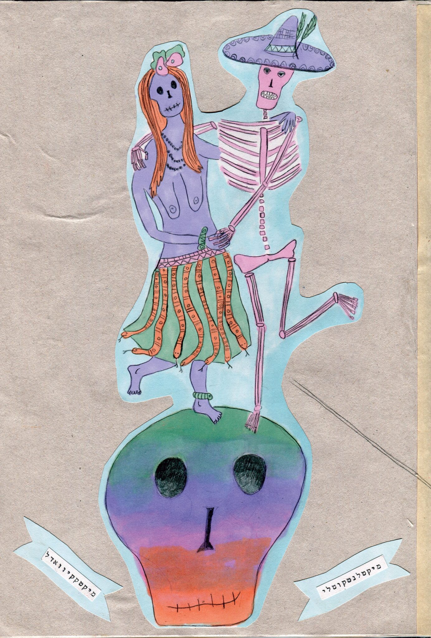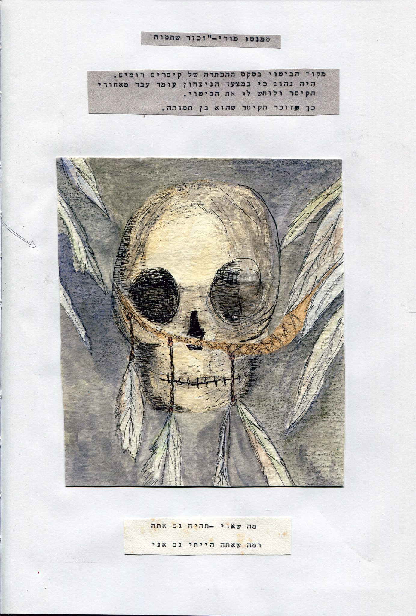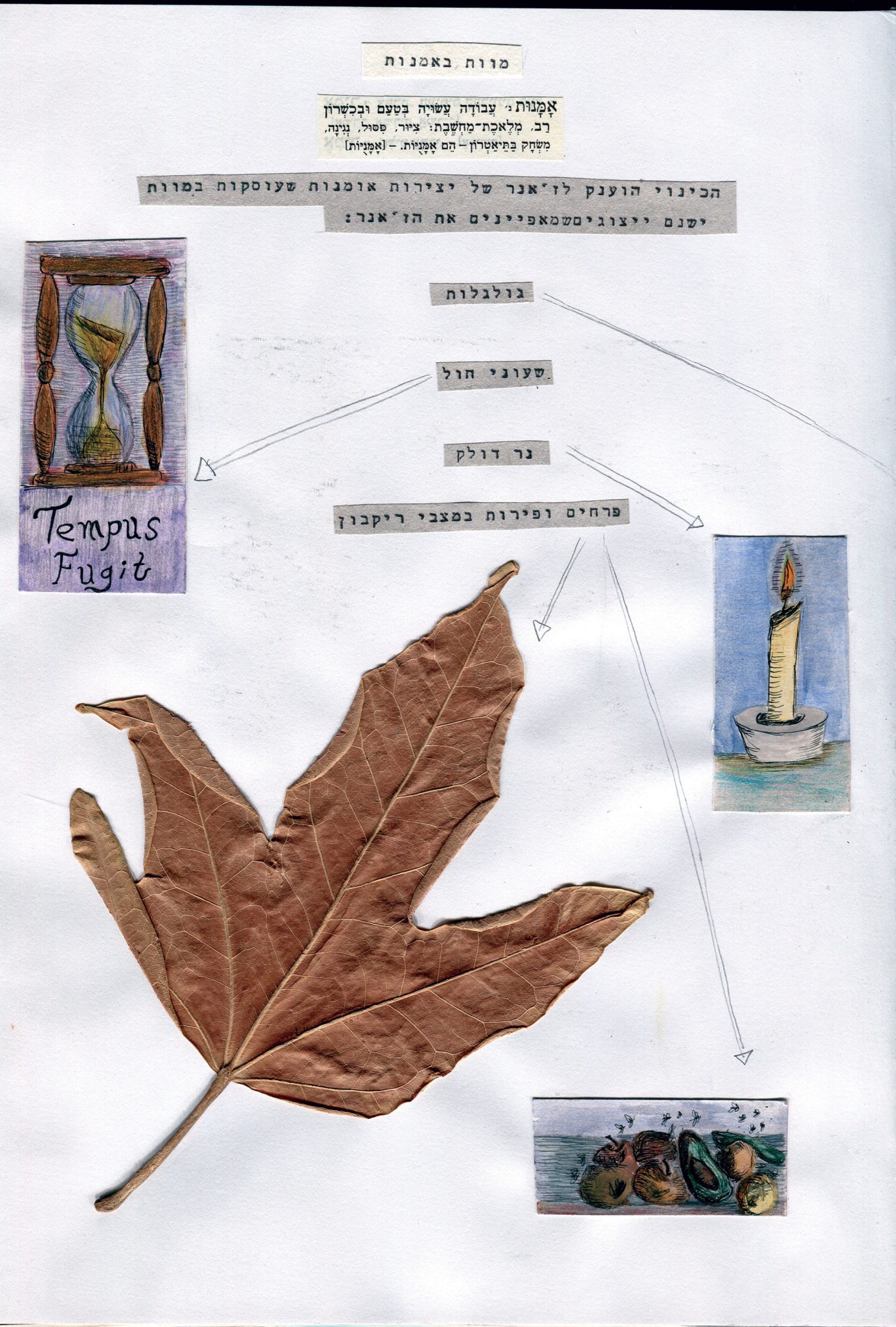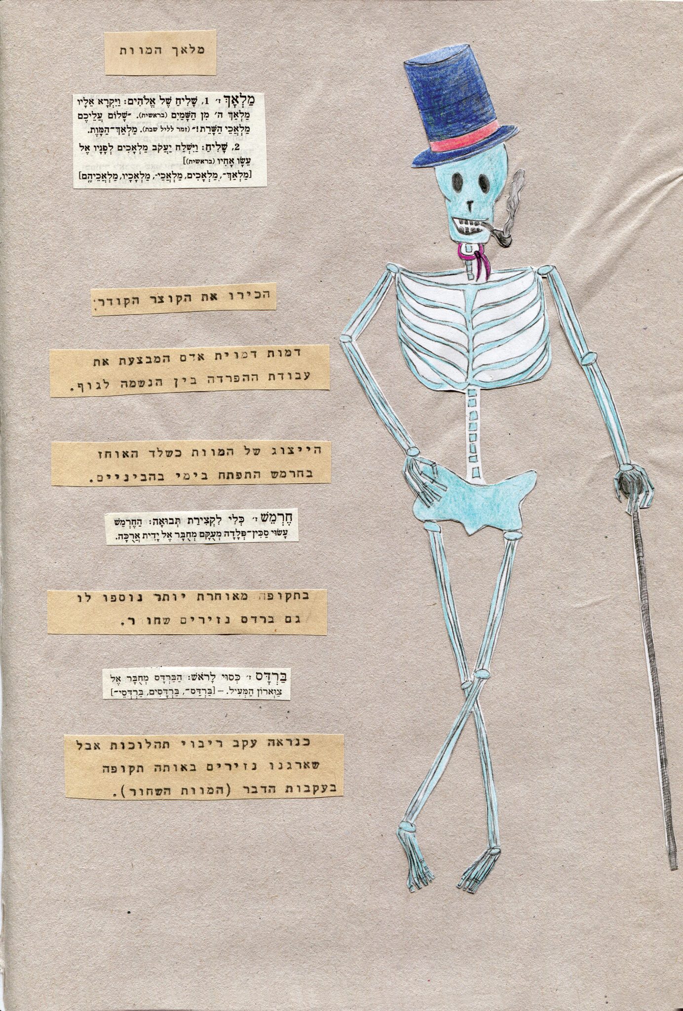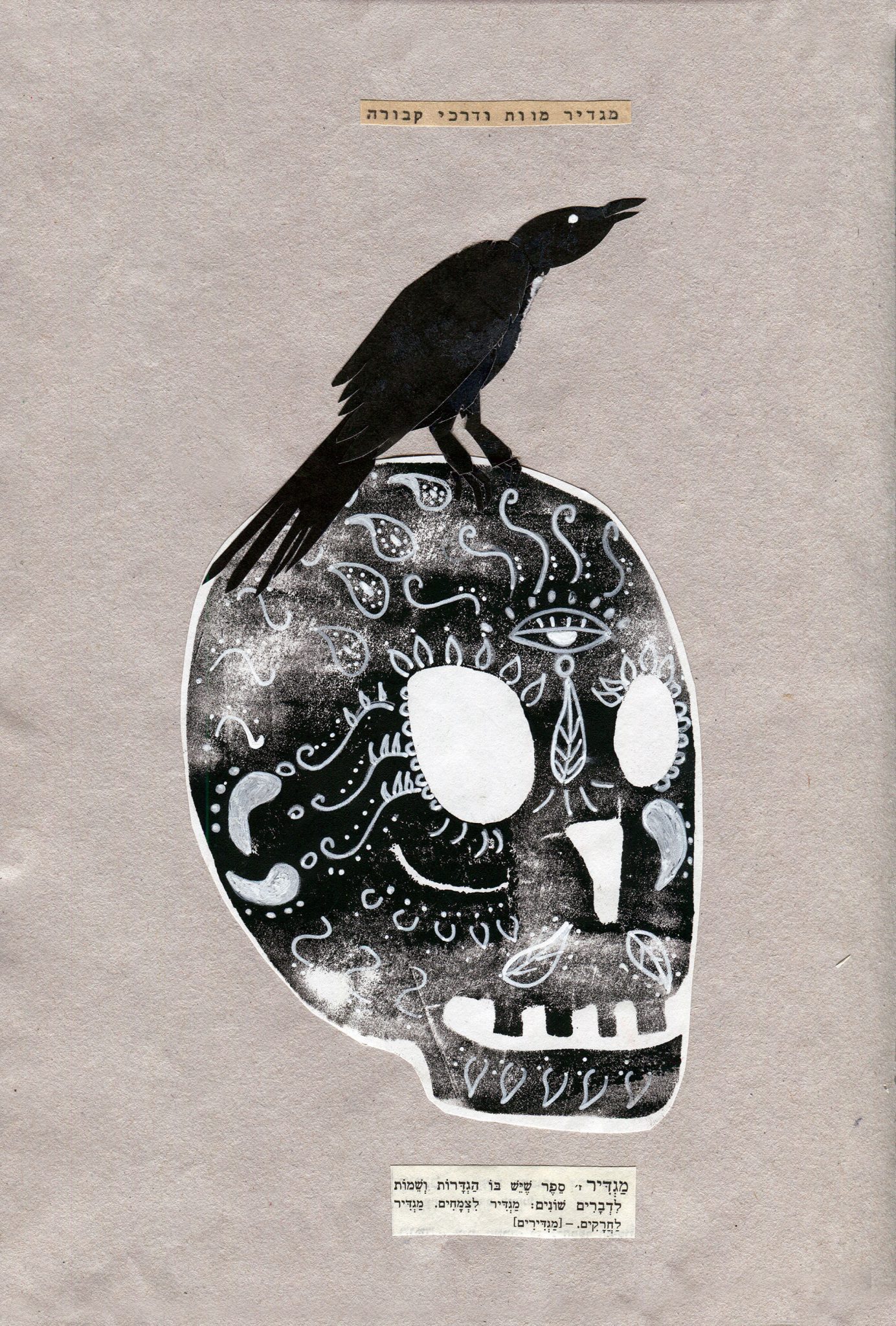 לא היה לי אז וואטסאפ אבל המייל שלי באותה התקופה (ועדיין) היה מלא בהודעות בסגנון ״הייתי בבית קברות המיוחד הזה וחשבתי עלייך…״, עם תמונות של מצבות או גולגולות או משהו מורבידי אחר. כל הזמן צחקתי שאם מישהו פורץ לי למחשב – הוא עלול לחשוב שאני רוצחת סדרתית. המטרה הייתה ליצור הצצה לסקצ׳בוק האישי שמגדיר את הנושא. הסגנון הוא לכאורה לא לחלוטין מעובד, חופשי, העבודה היא ידנית, בחומרים מגוונים.