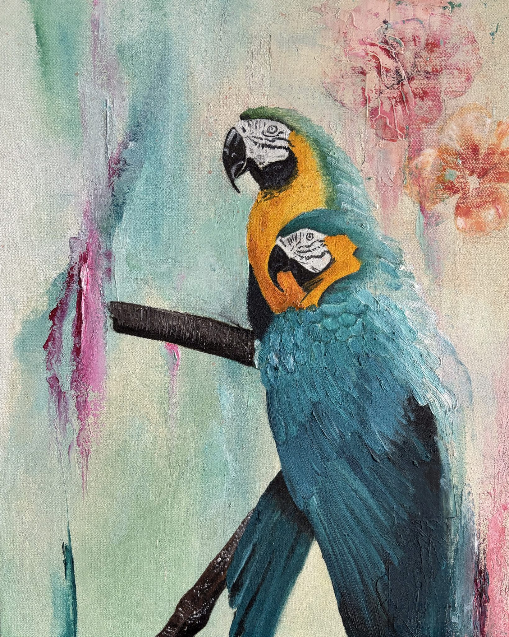 האיורים הראשונים היו עצי דקל. אני מציירת אותם כבר שנים, בכל מיני ורסיות, והם הפכו בשבילי לסמל לחופש ולפשטות טהורה. מהם זה התרחב לציפורים טרופיות, לוואן עם גלשן, לעלים מיוחדים ולעוד דברים שבאו מהטבע או מהדמיון.