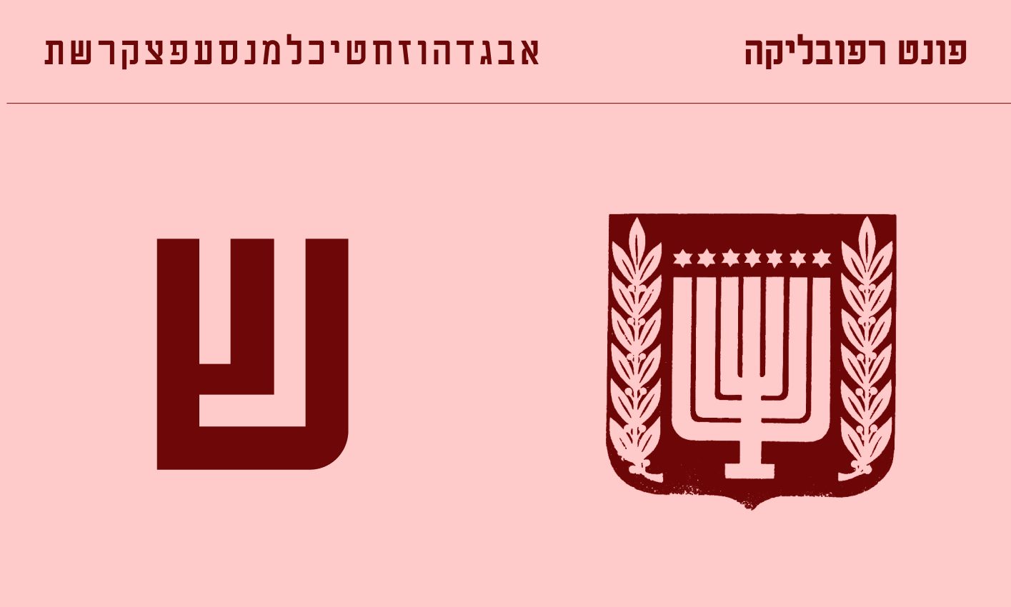 כשההלם הראשוני של המלחמה שכך במעט וחזרתי להפגין ברחובות, יצרתי את ״רפובליקה״ מתוך רצון להיאחז במדינה כפי שהייתה פעם. הפונט מבוסס על מבנה ריבועי וצר, המעניק לו תחושה ״ממלכתית״. הוא נבנה על גריד משבצות מסודר, שיטת עבודה המלווה את כל הפונטים שלי, ועם עובי קו אחיד. עם זאת, בזרועות הפנימיות, כמו באות ש׳, עידנתי מעט את עובי הקו, מה שהוסיף לפונט נופך אלגנטי.
