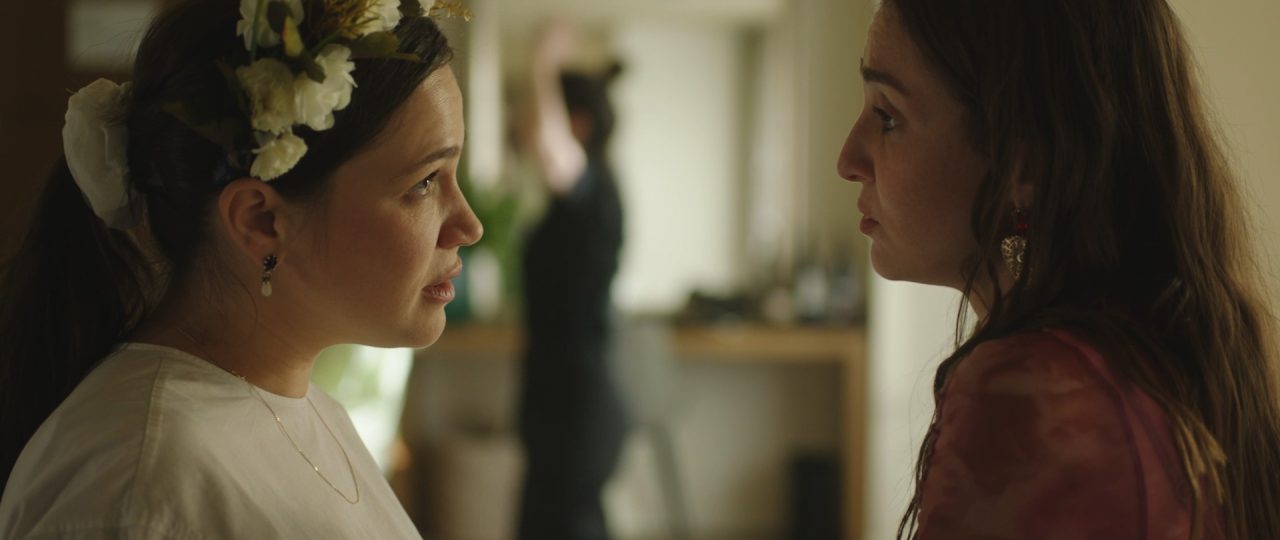 ״שושבינה״ של גאיה שליטא כץ מתקיים במרחב טקסי של חגיגה – מסיבת רווקות – אבל מהר מאוד מתהפך לתחושה טעונה של אי־נוחות, קונפליקט והתבלטויות. כלה בהריון מתקדם מתעקשת להיאחז בשמחה ובאופטימיות – בעוד שמסביב לה הדברים מתפרקים: חברה אחת לוקחת פטריות, השנייה קורסת להתקף חרדה, אחרת מפזרת הערות מביכות. מתוך הדינמיקה הזו עולים ספקות וחרדות, תהיות על מושג האושר, על המשך החיים ועל עצם החברות ביניהן.