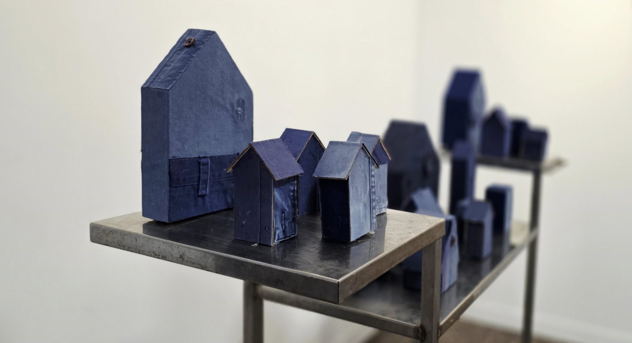 בגוף עבודות נוסף מוצגת שכונה קיבוצית שעשויה מבתים עטופים בבדי בגדי עבודה כחולים. גוף עבודות אחר שמונח על במות נמוכות במרכז התערוכה הוא מקבץ של כלי אוכל ומגשים מחדר האוכל, שגם הם עטופים בבדים הכחולים. על הקירות תלויה סדרה של גלויות מהקיבוץ, שמאזכרות צילומים וברכות שנהגו לשלוח בעבר