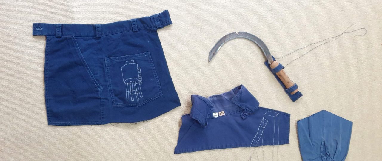 אני עוסקת בפירוק ופרימה של הבגדים, שלא יהיו יותר שימושיים אבל יספרו סיפור. אני משלבת בעבודות דימויים שרקומים בתכי מכונה, שמייצגים מקומות אייקוניים בקיבוץ כמו מגדל מים, מגדל שמירה, תכנית של בית ילדים, סולמות וסירי מטבח קיבוצי.