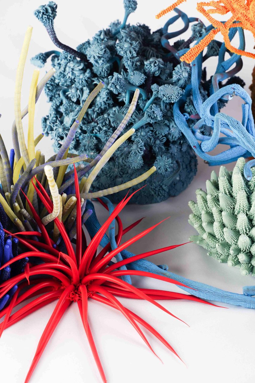 בכניסה לחלל התערוכה ״שירת האלמוגים״ במוזיאון הטבע צריך לעצור לרגע ולתת לעיניים להסתגל לחשיכה. כמעט כמו השתהות מעל המים לקחת אוויר, רגע לפני הצלילה לתוך המיצב של המעצב והאמן צורי גואטה – על צבעיו המרהיבים, על פרטי הפיסול הווירטואוזי והחומרים המתעתעים. ככל שנעמיק פנימה, העבודות מקיפות ועוטפות אותנו, והשיטוט בתערוכה מדמה צפייה מקרוב בשוניות אלמוגים (בלי להרטיב את הרגליים).