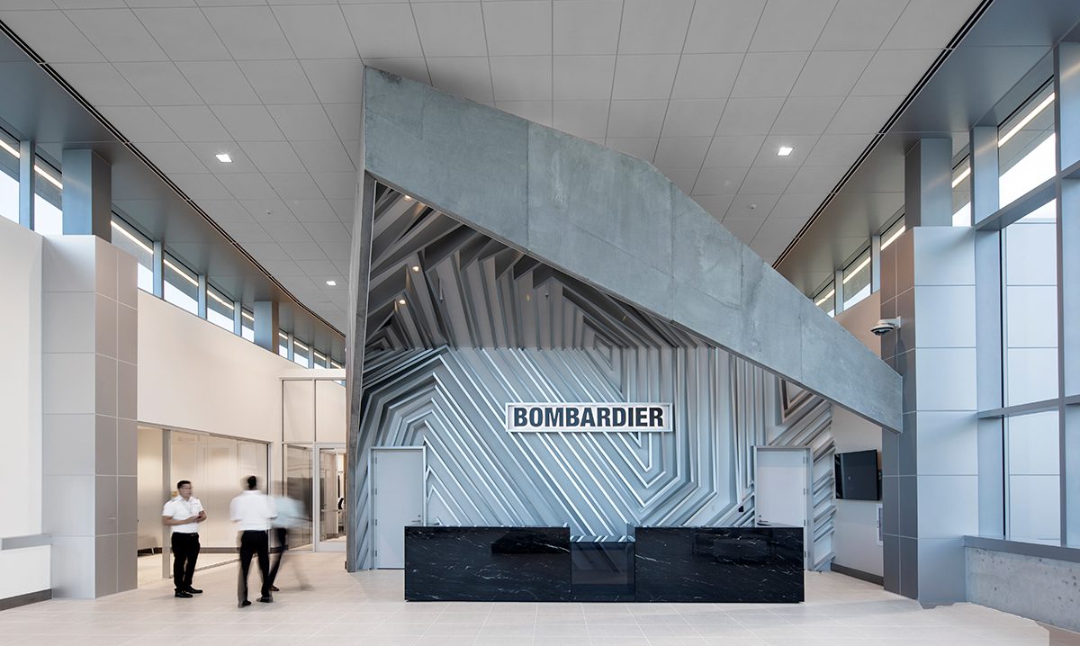 Janus Portal, מיצב בטון תלוי־מקום של טרוי סימונס, (2022) במתקן השירות של חברת בומברדייה. צילום: קובין היל