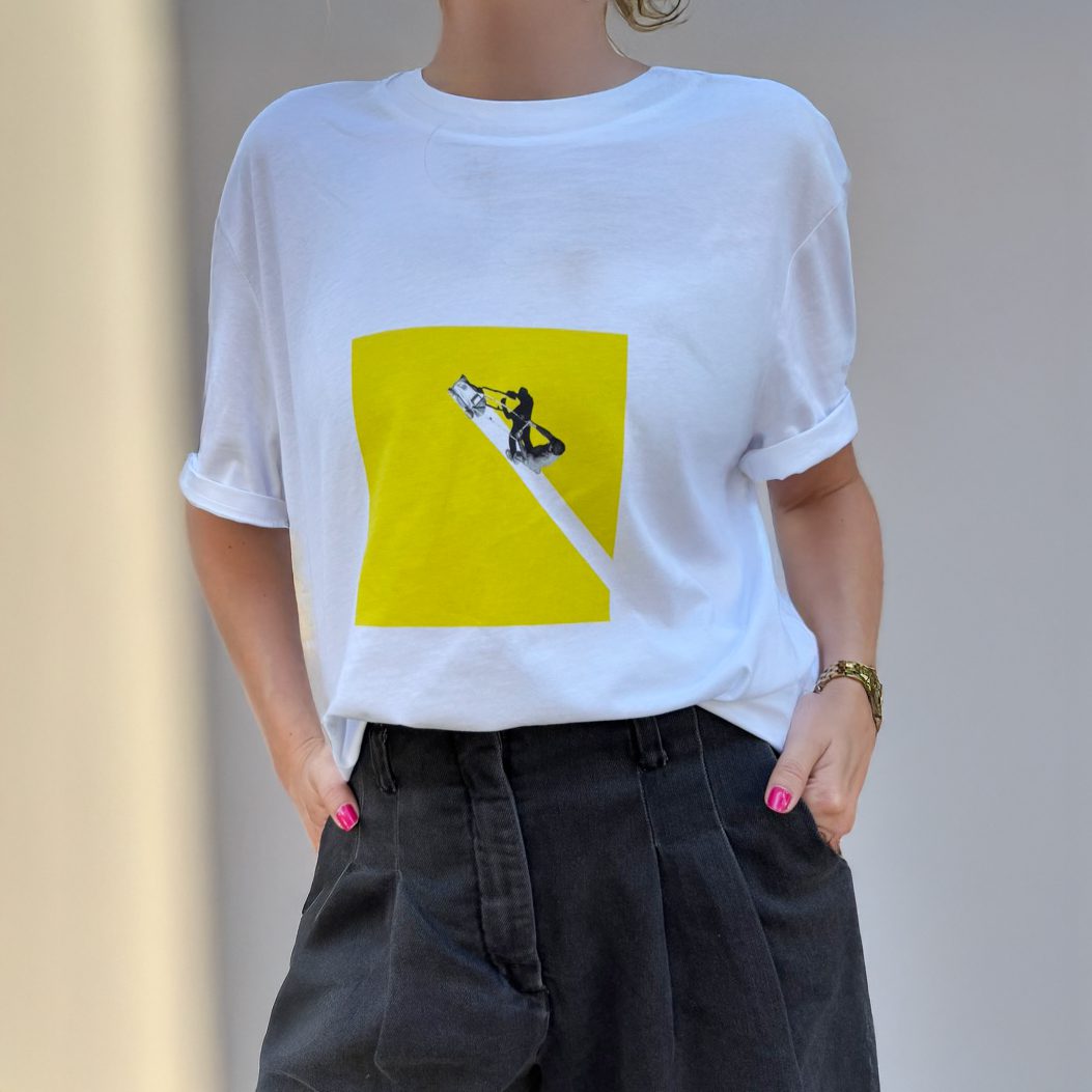 במקביל, במסלול נושק אבל שונה, התחלתי ליצור קולאז׳ים, ז׳אנר שתמיד אהבתי. זה התחיל כסוג של תחביב, אבל אז הגיעו פניות, הזמנות והצעות, ומצאתי את עצמי מגשים את עצמי במסלול נוסף – יוצר קירות במרחב הציבורי, בפרויקטים שונים של אמנות ושיתופי פעולה מעניינים. מתישהו הרעיון של להציג את היצירות שלי על חולצות נשתל לי במוח.