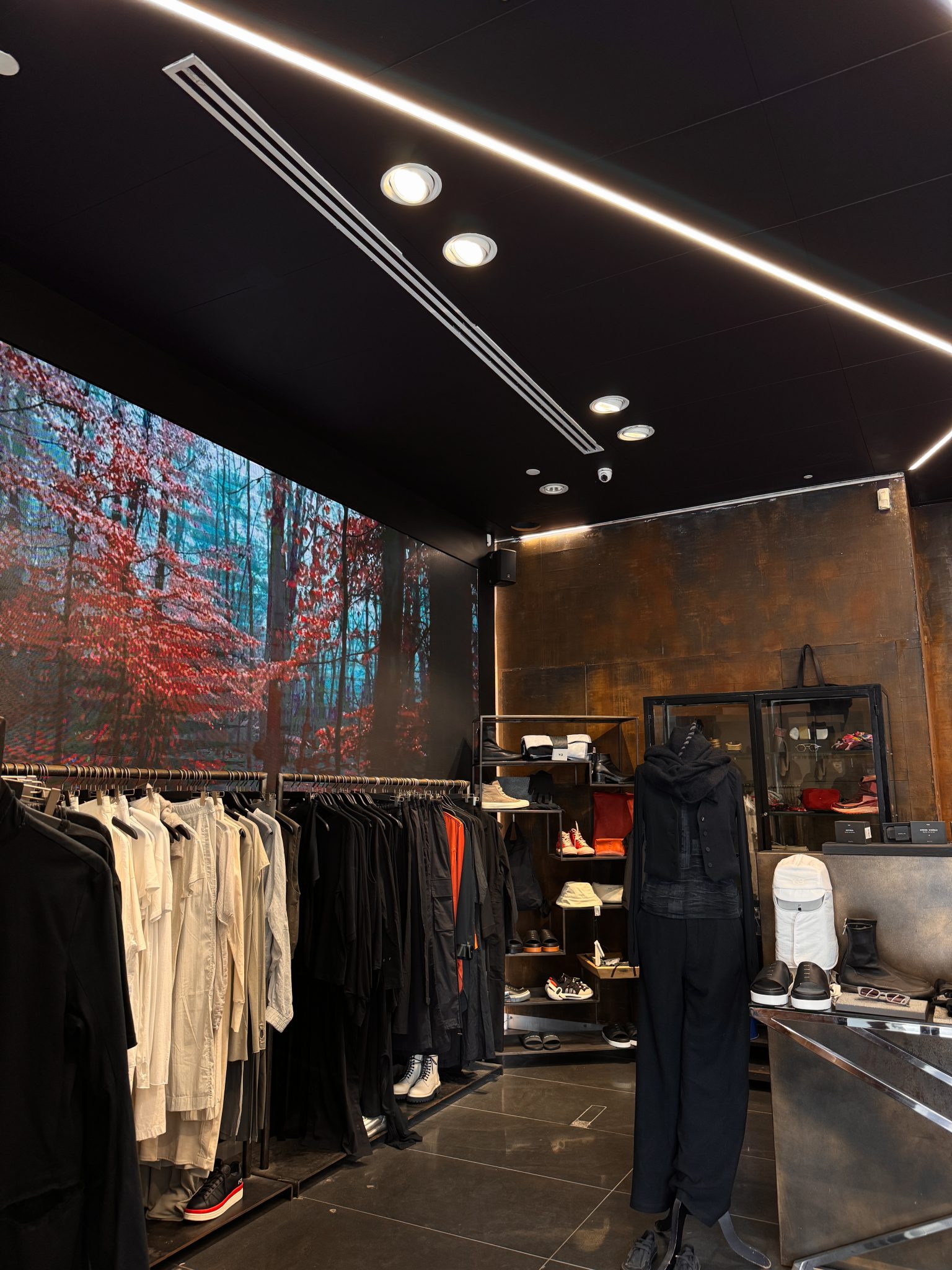 בגדי הגברים מוצגים בקומת המרתף, שבה האווירה היא דרמטית והעיצוב התעשייתי. ״זהו חלל חשוך וסוחף שמזכיר מועדון לילה. האור ממוקד על הקירות הגולמיים, והאווירה המסתורית יוצרת רקע מושלם לקולקציות האוונגרדיות של המעצבים שמוצעים בחנות״.