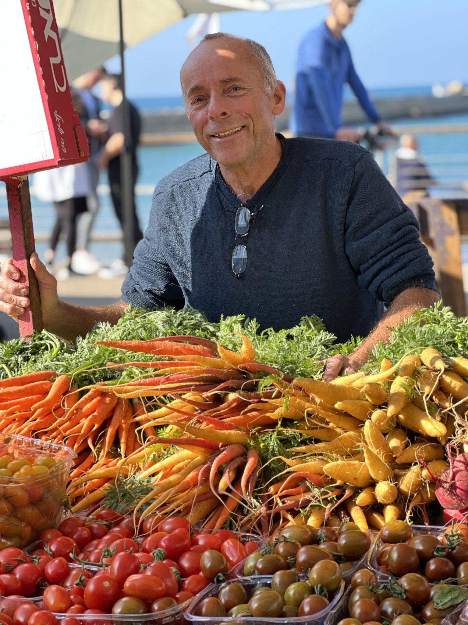 החקלאי אריק רבינוביץ׳ בשוק האיכרים בת״א. צילומים: מ”ל